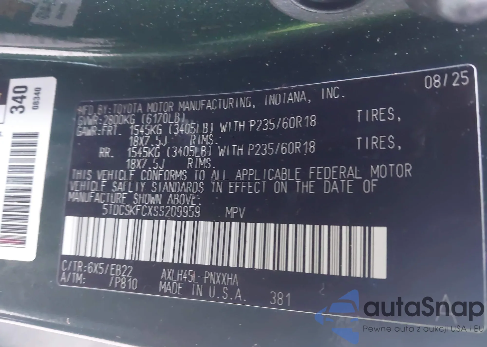 LOT: 44295457 VIN: 5TDCSKFCXSS209959