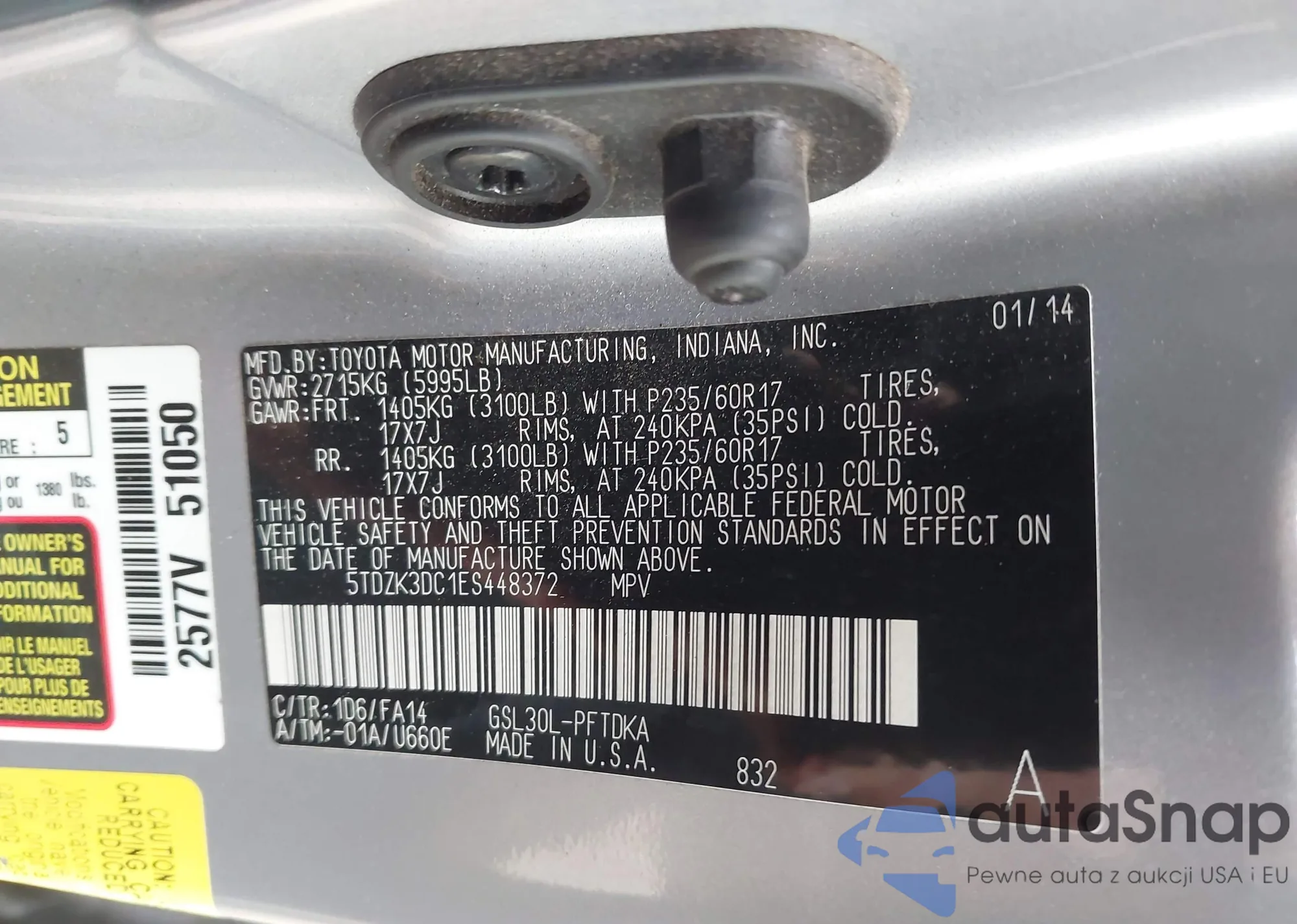 • VIN 5TDZK3DC1ES448372