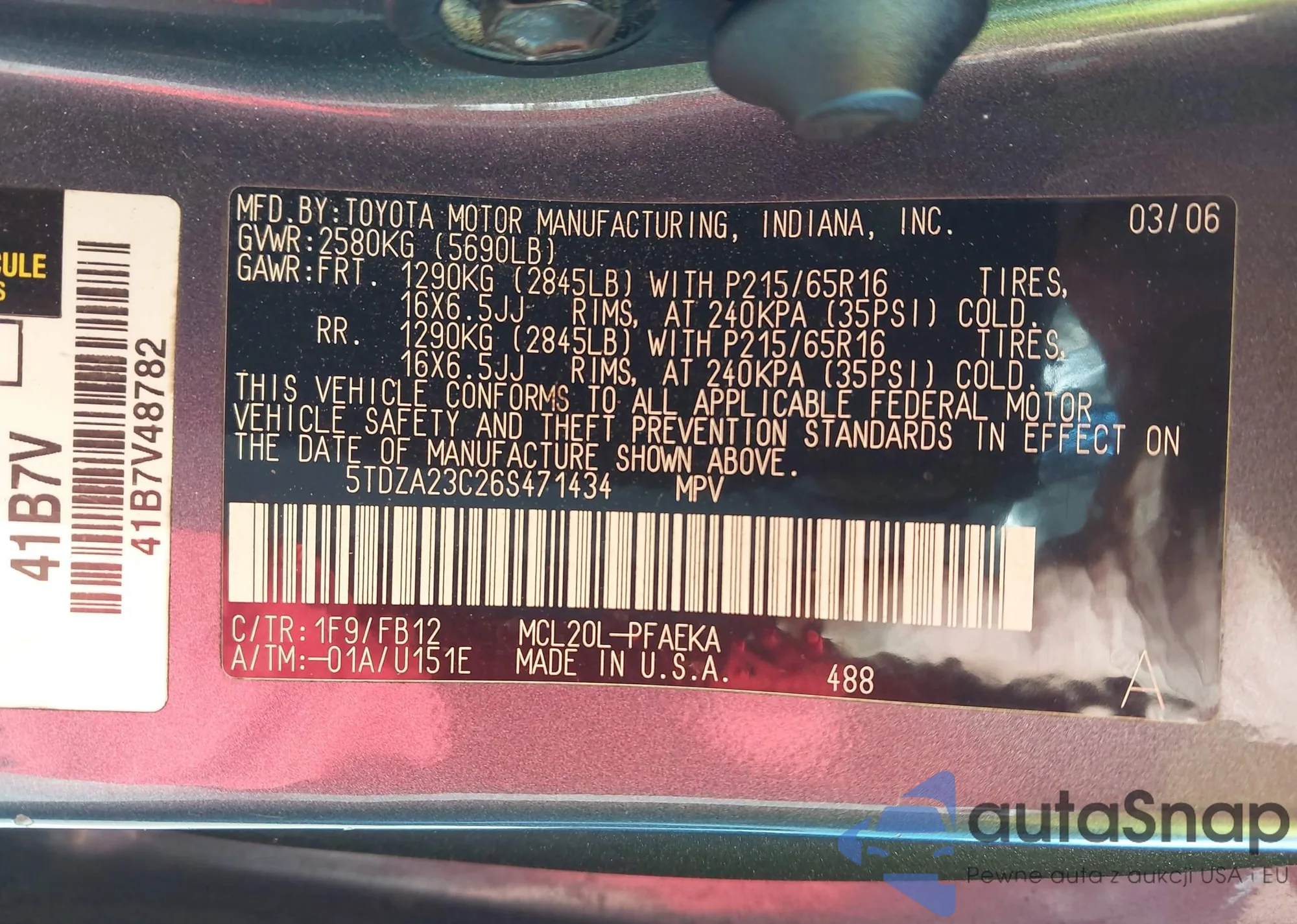 • VIN 5TDJRKEC0MS031504