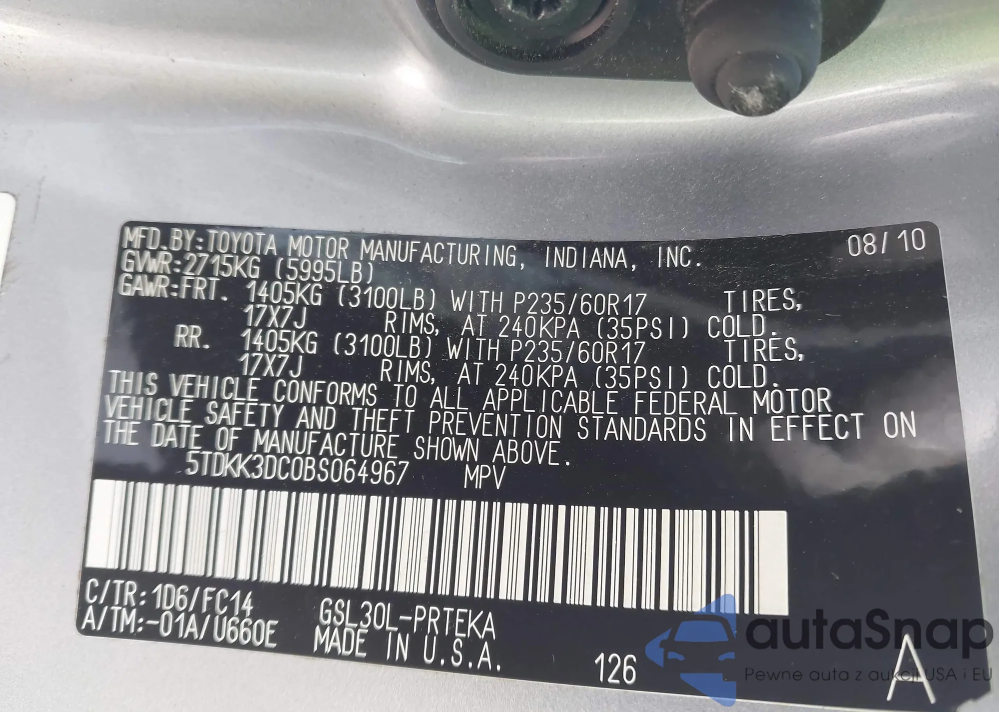 • VIN 5TDKRKEC1MS029507