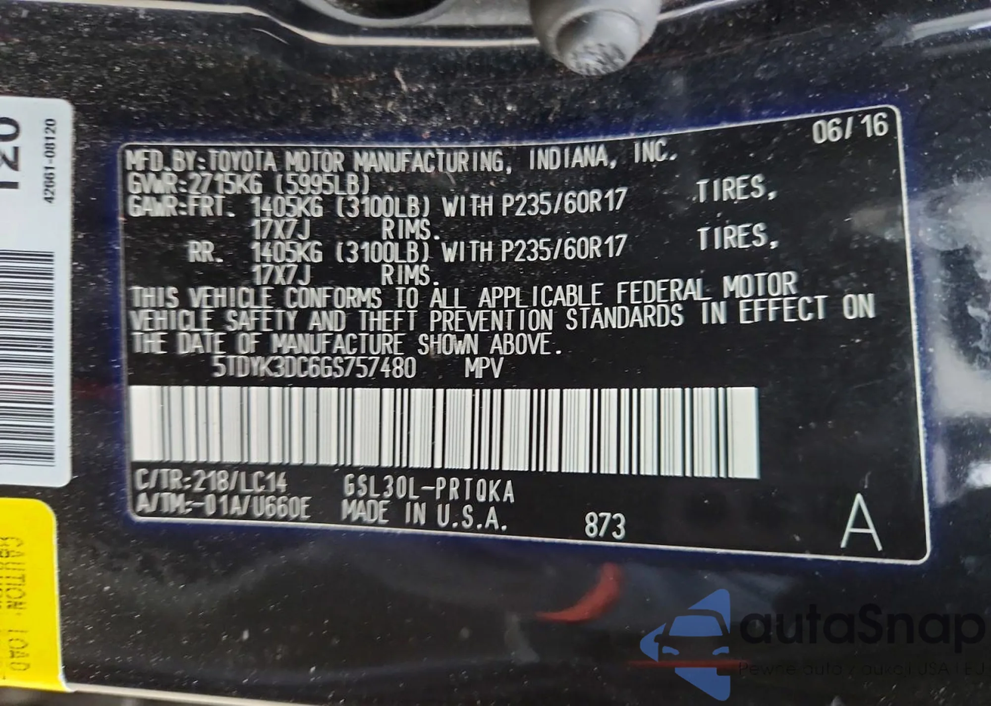 • VIN 5TDYK3DC6GS757480