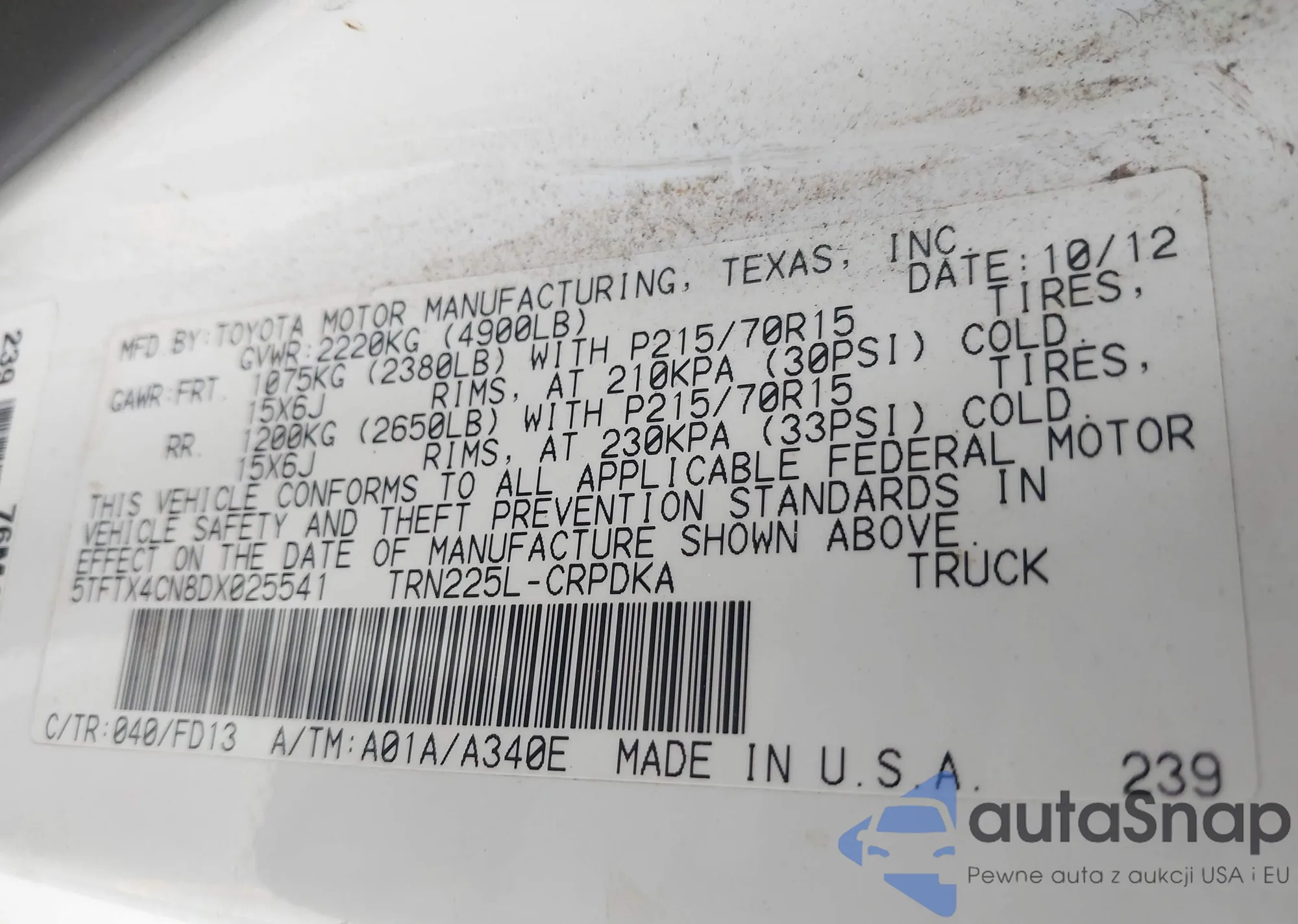 • VIN 5TFTX4CN8DX025541