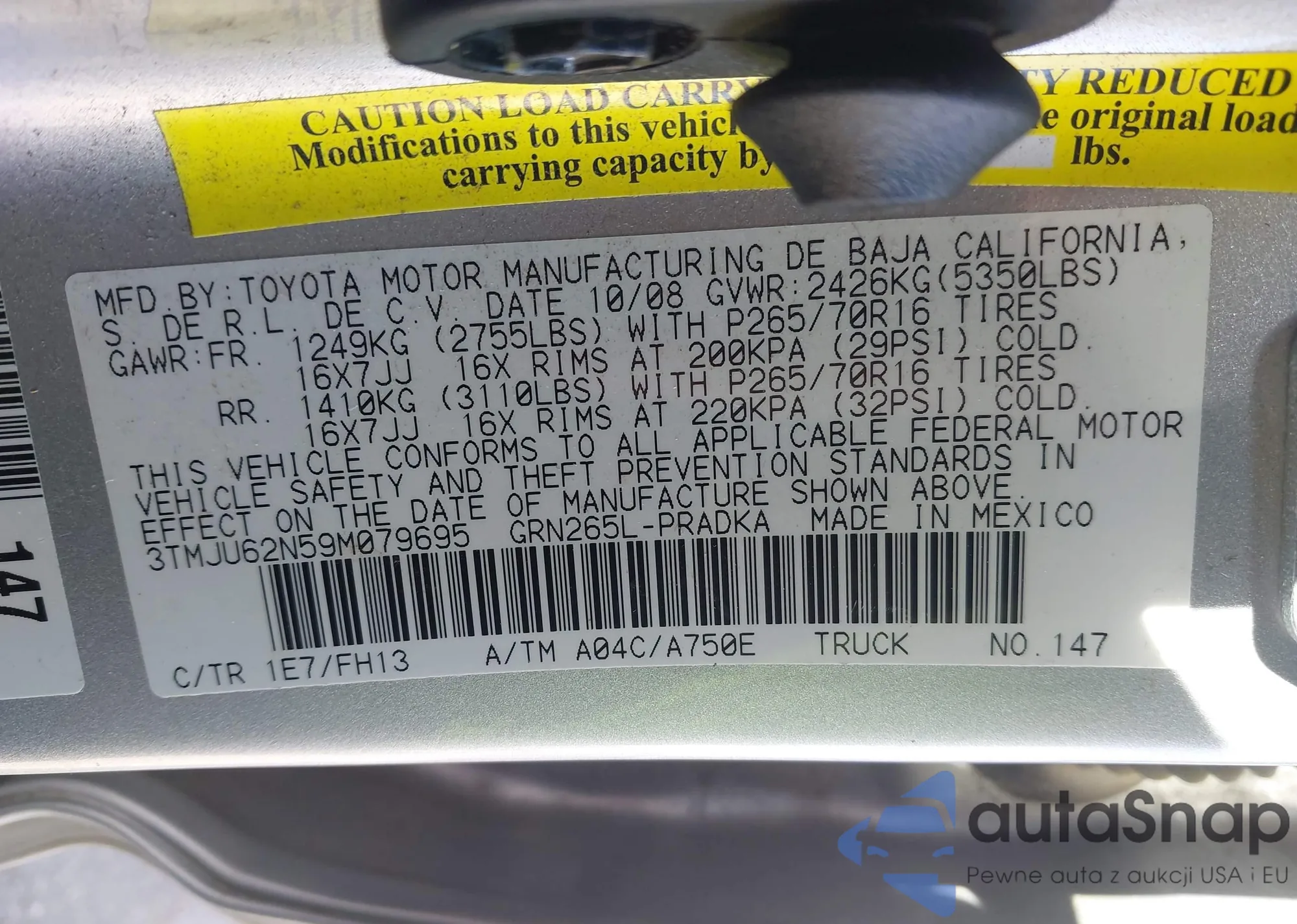 LOT: 44178354 VIN: 3TMJU62N59M079695