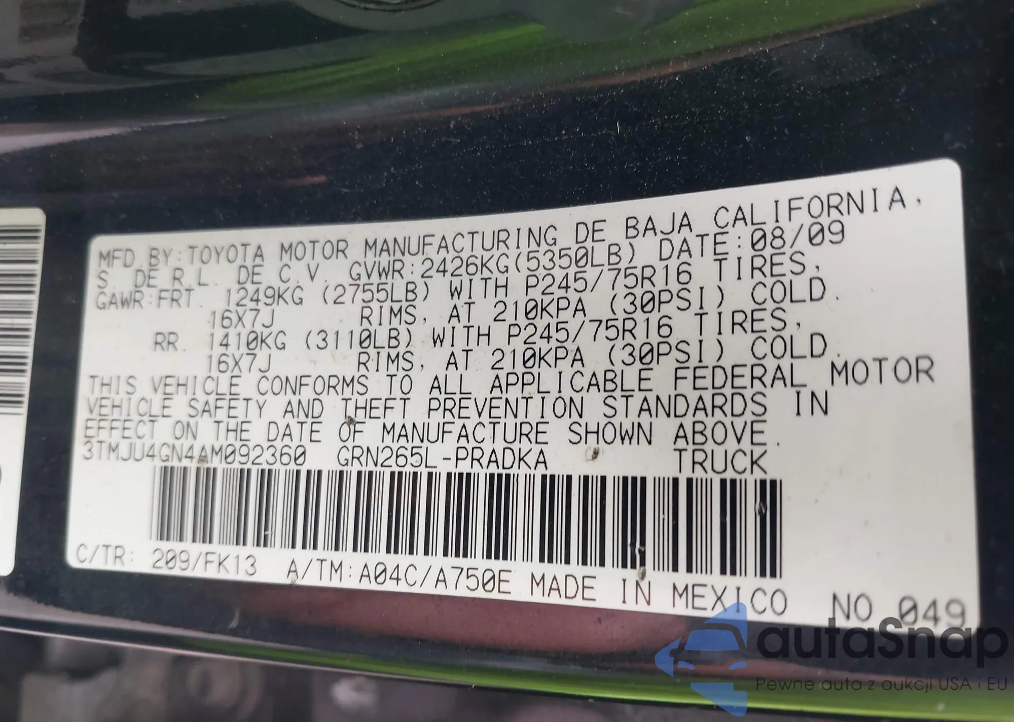 • VIN 3TMJU4GN4AM092360