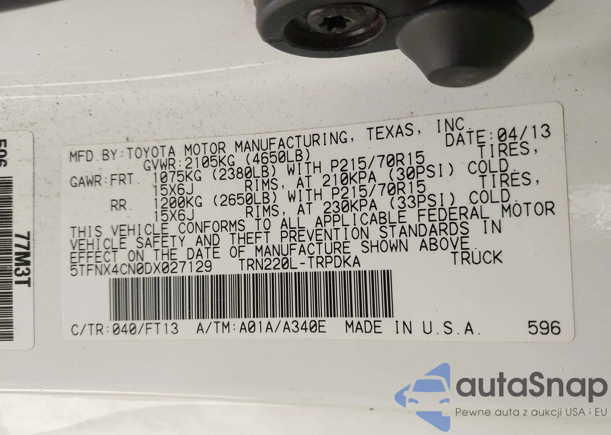 • VIN 5TFNX4CN0DX027129