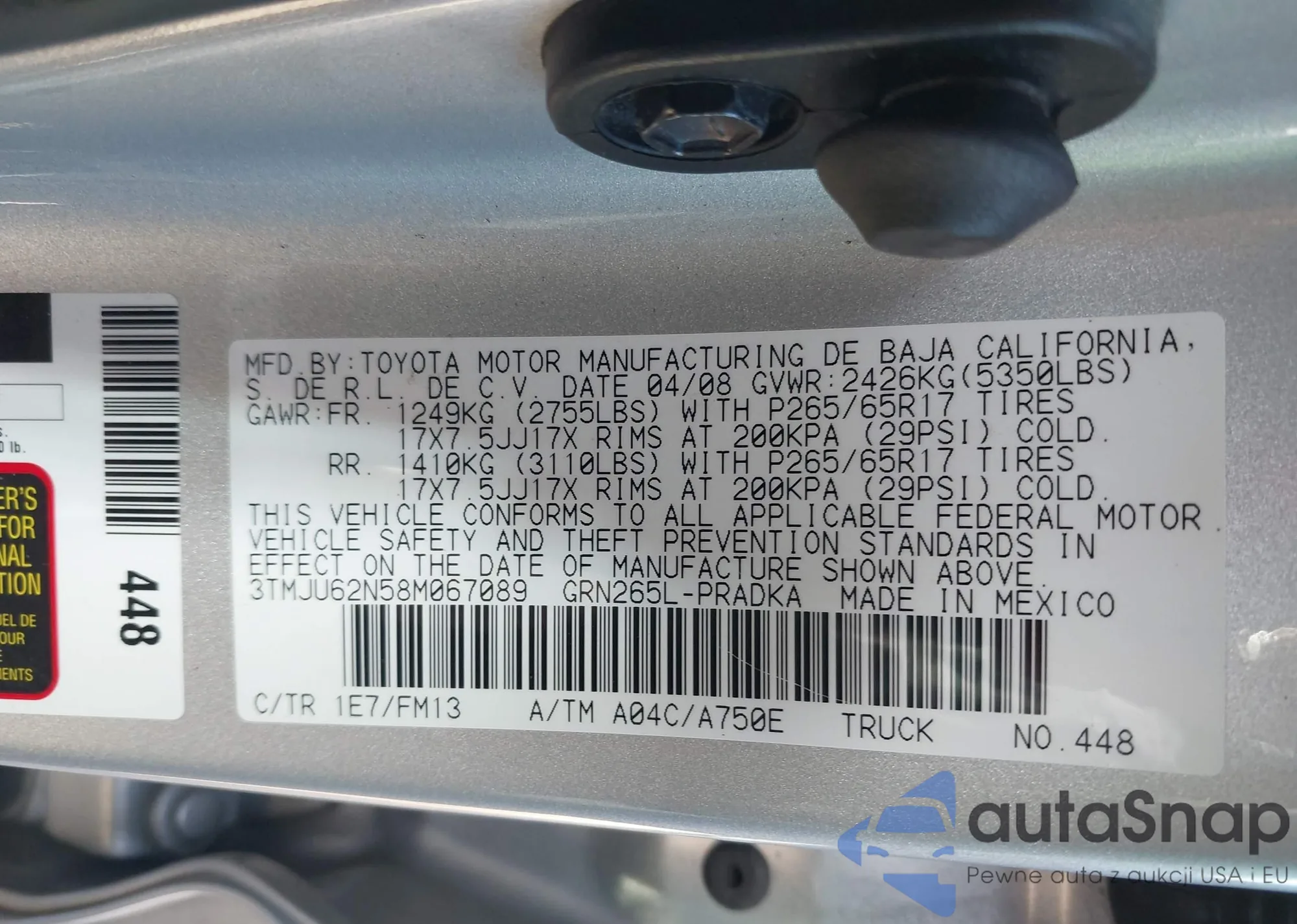• VIN 3TMJU62N58M067089