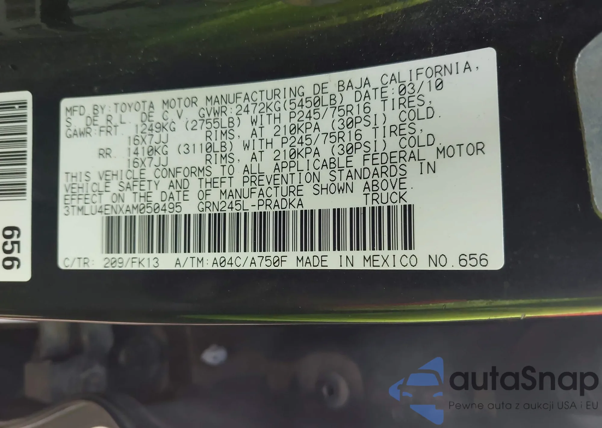 • VIN 3TMLU4ENXAM050495