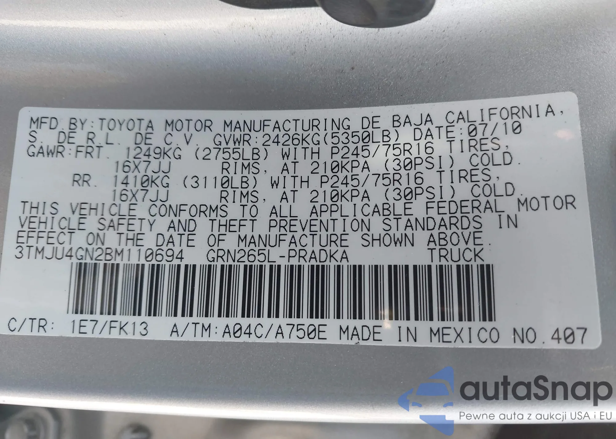 • VIN 3TMJU4GN2BM110694
