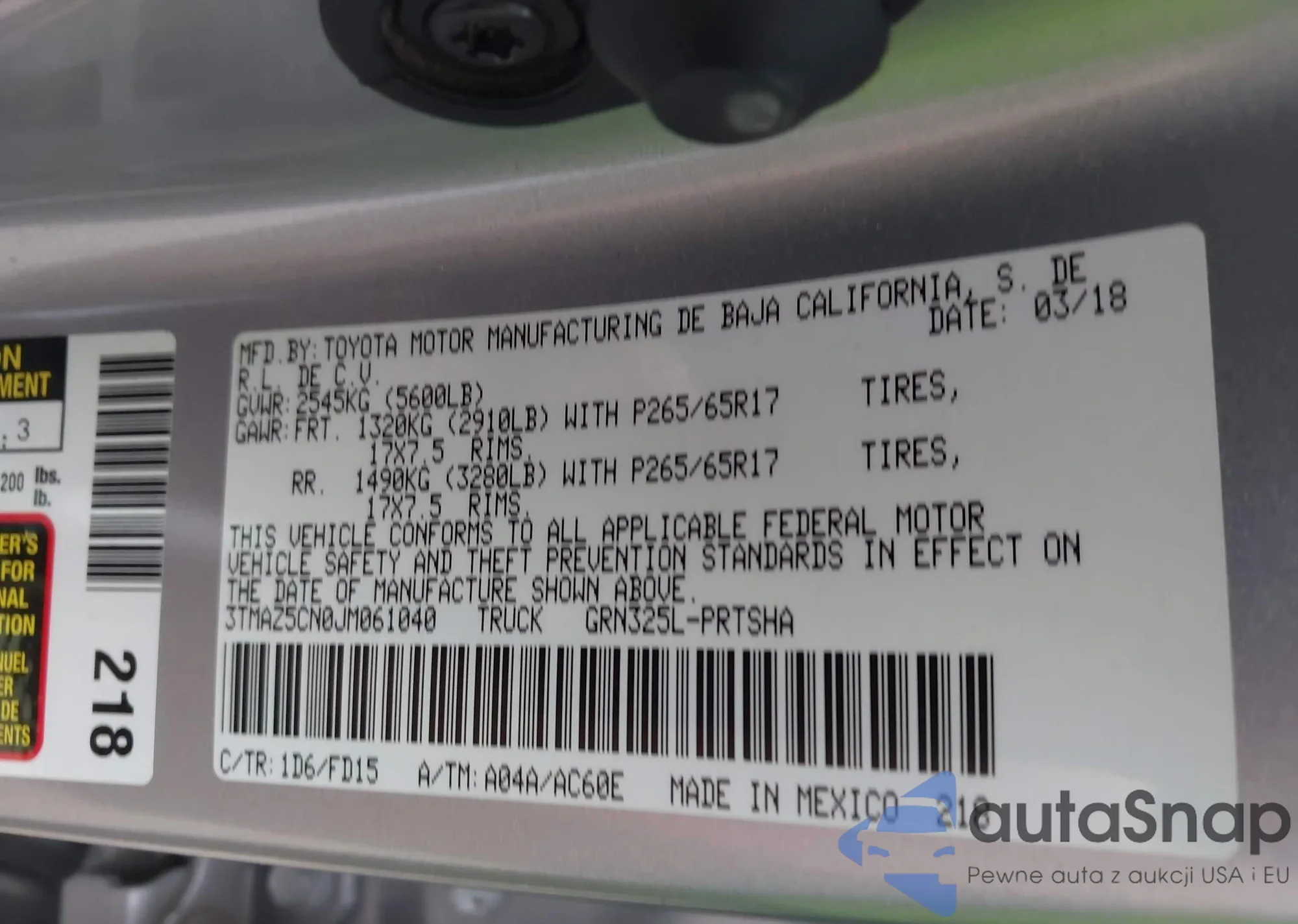 • VIN 3TMAZ5CN0JM061040