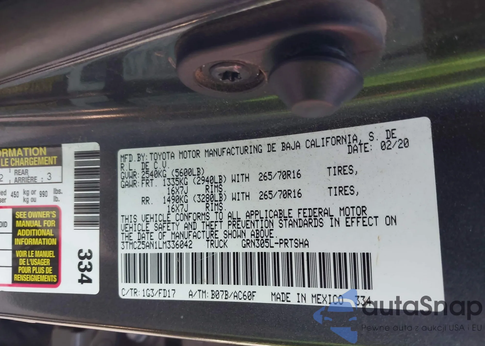 • VIN 3TMCZ5AN1LM336042