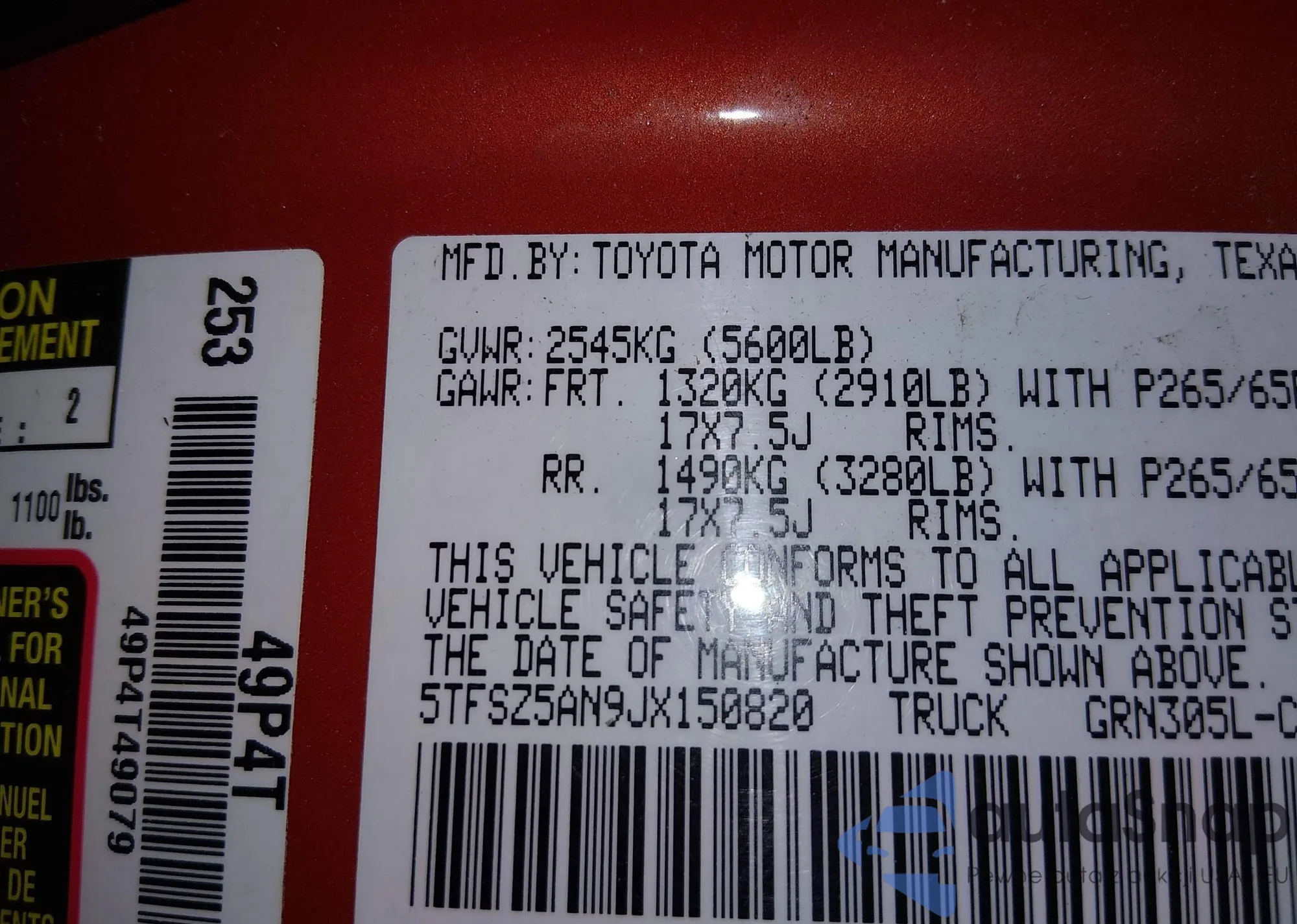 • VIN 5TFSZ5AN9JX150820