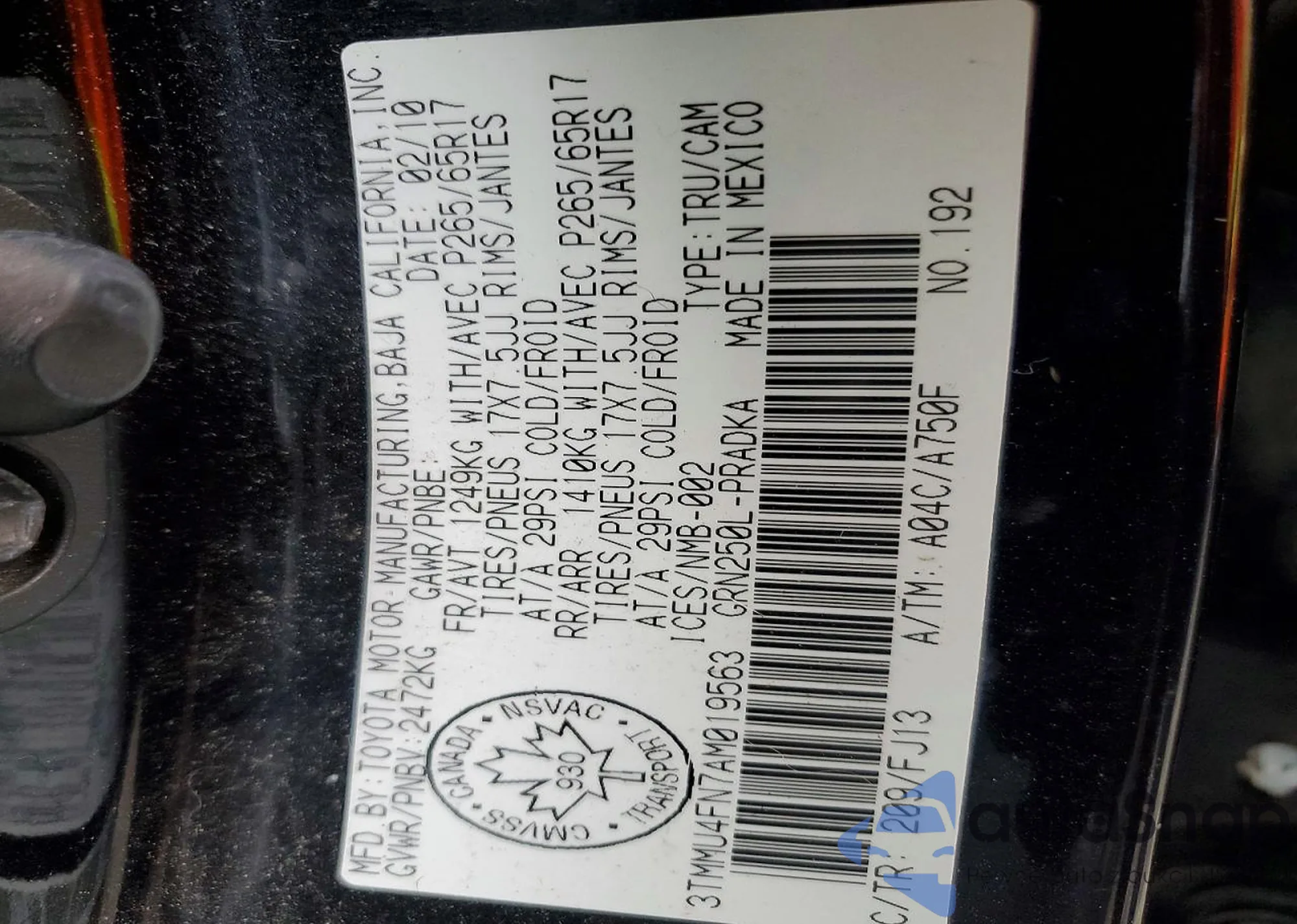 • VIN 3TMMU4FN7AM019563