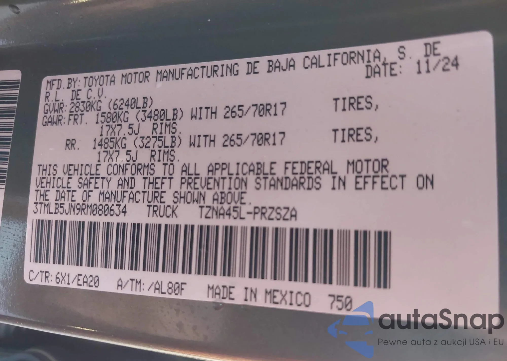 • VIN 3TMLB5JN9RM080634