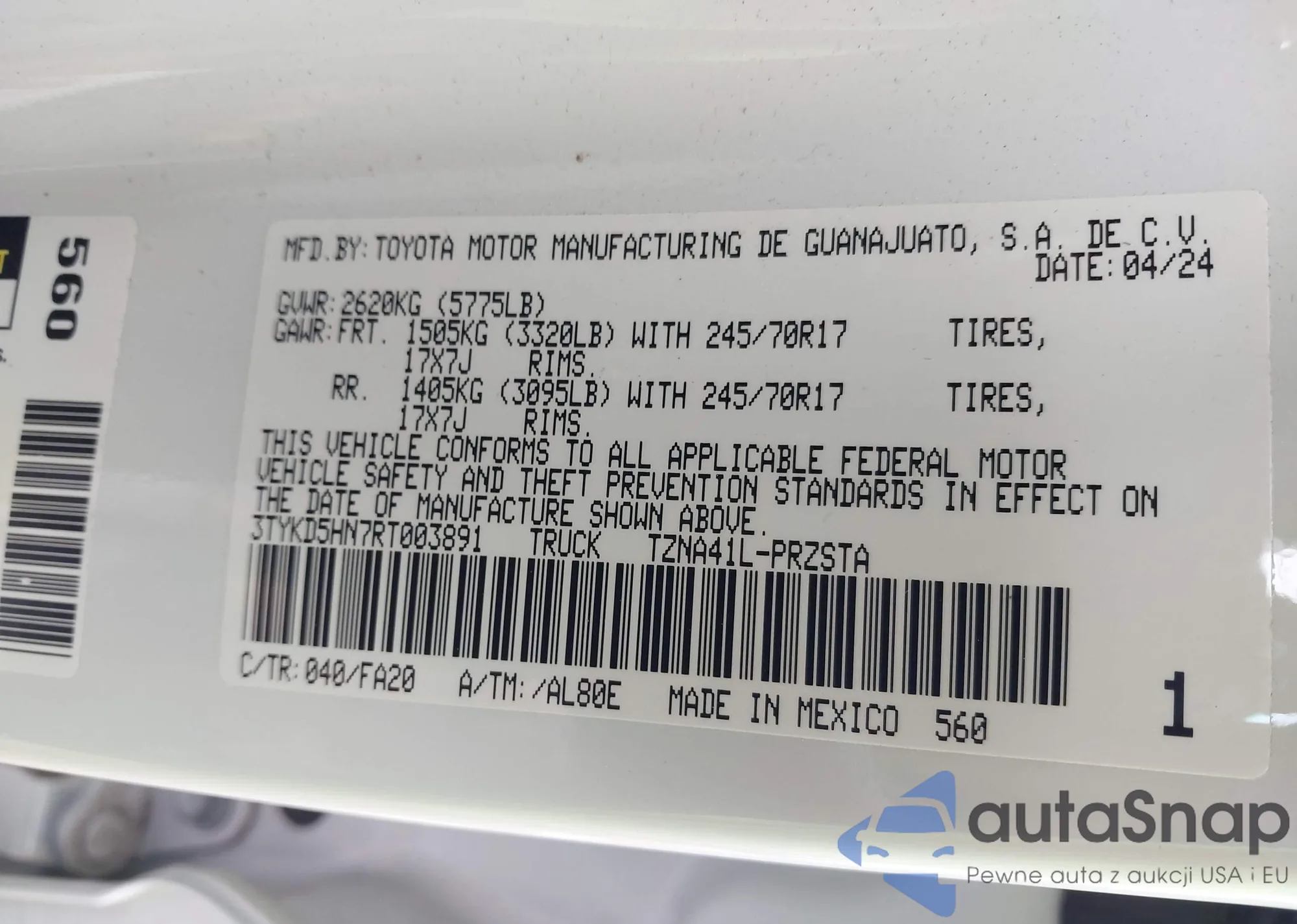 LOT: 44294576 VIN: 3TYKD5HN7RT003891
