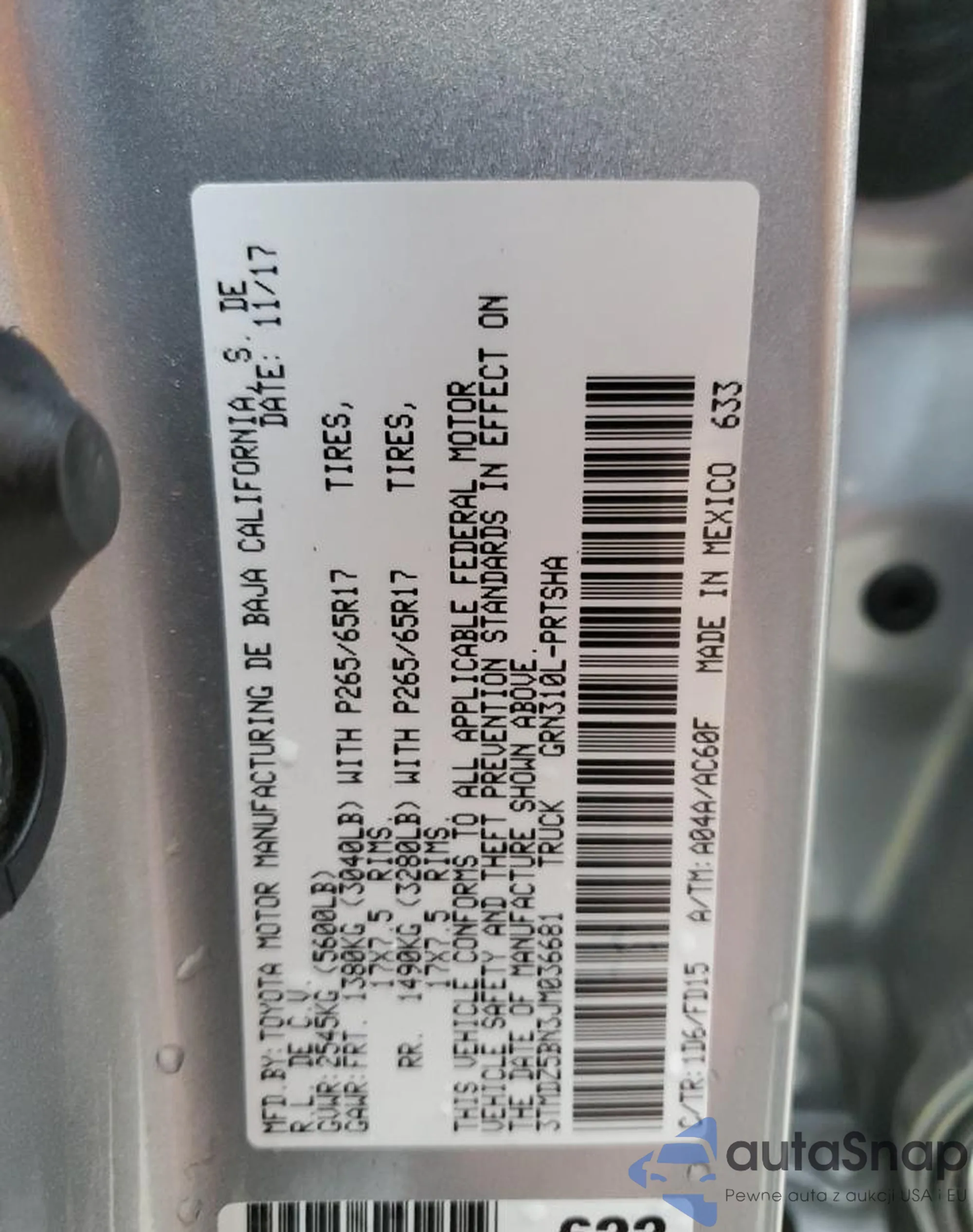 • VIN 3TMDZ5BN3JM036681