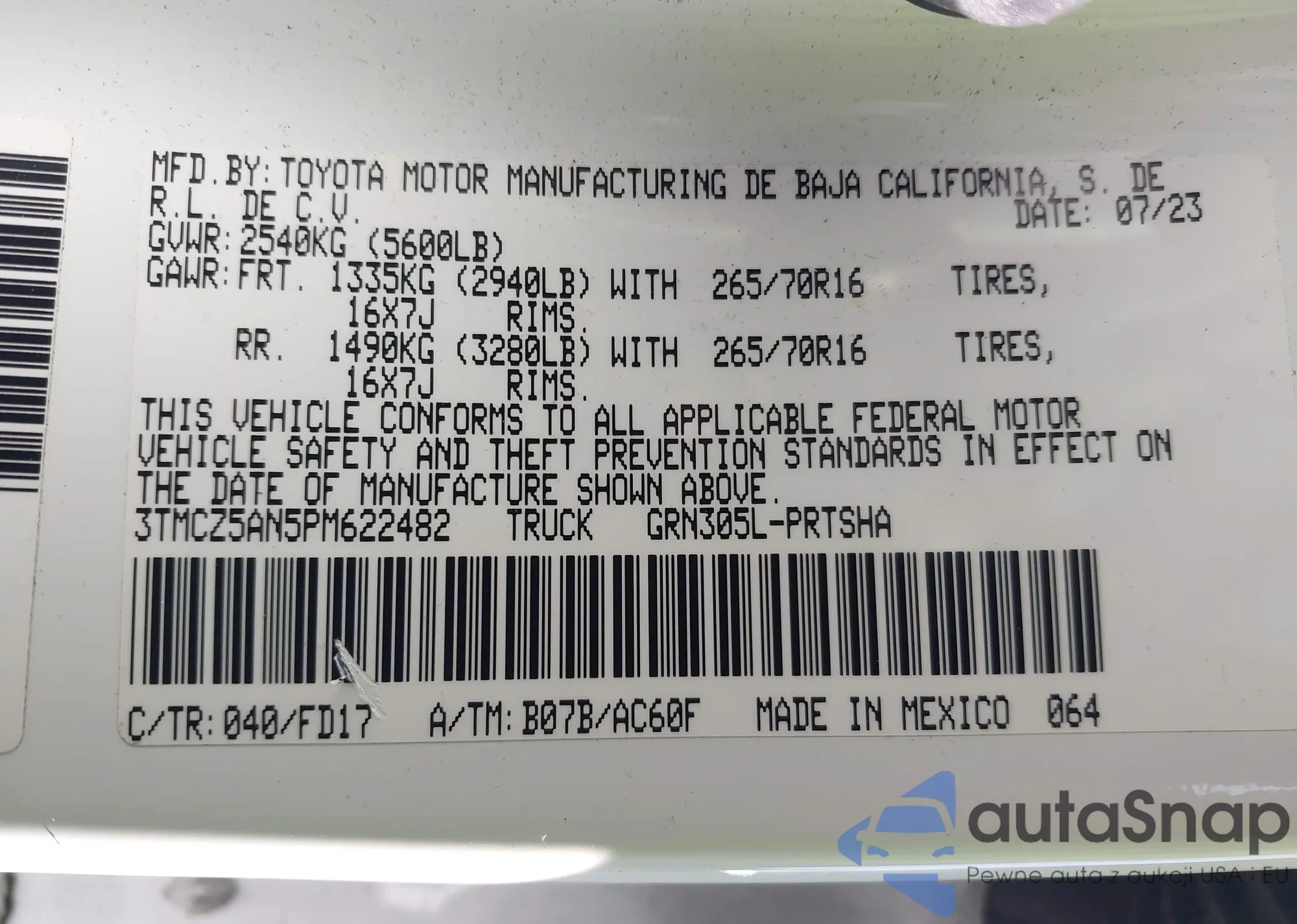 • VIN 3TMCZ5AN5PM622482