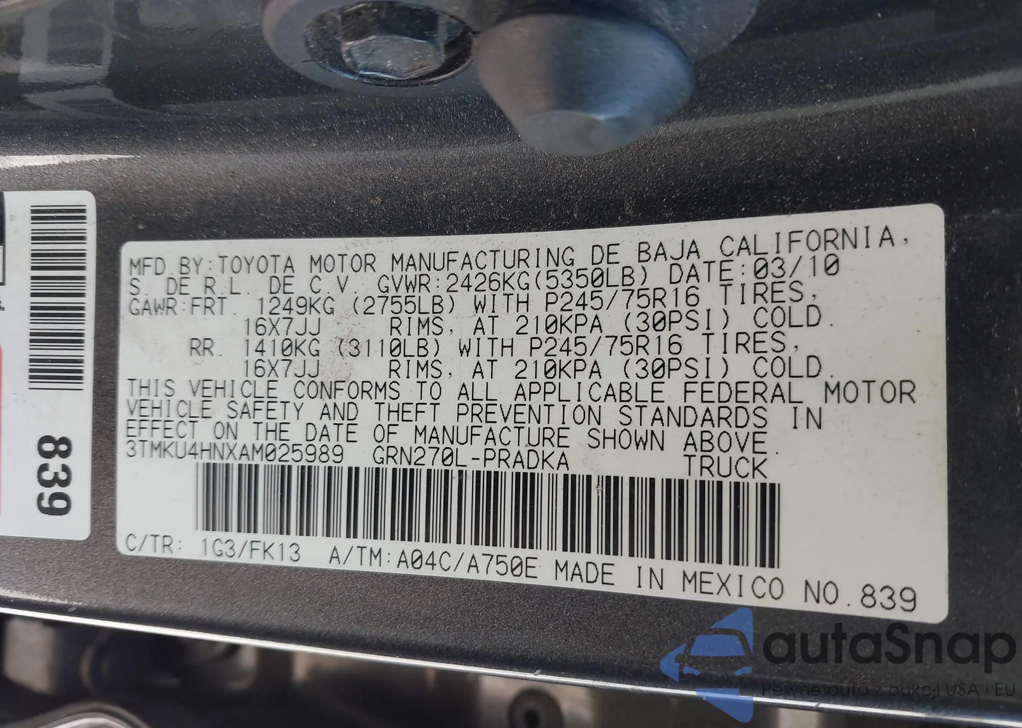 • VIN 3TMKU4HNXAM025989