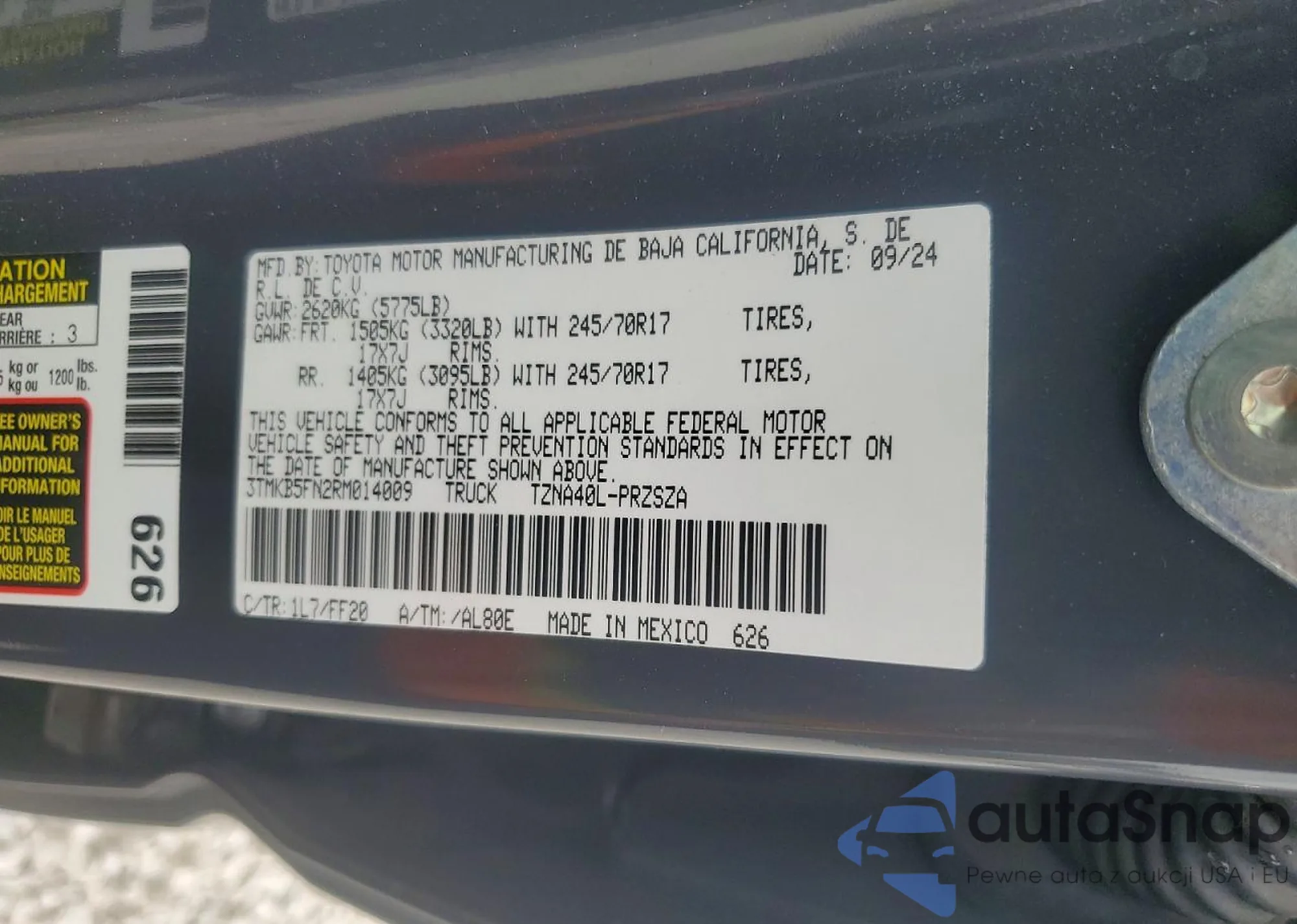 • VIN 3TMKB5FN2RM014009