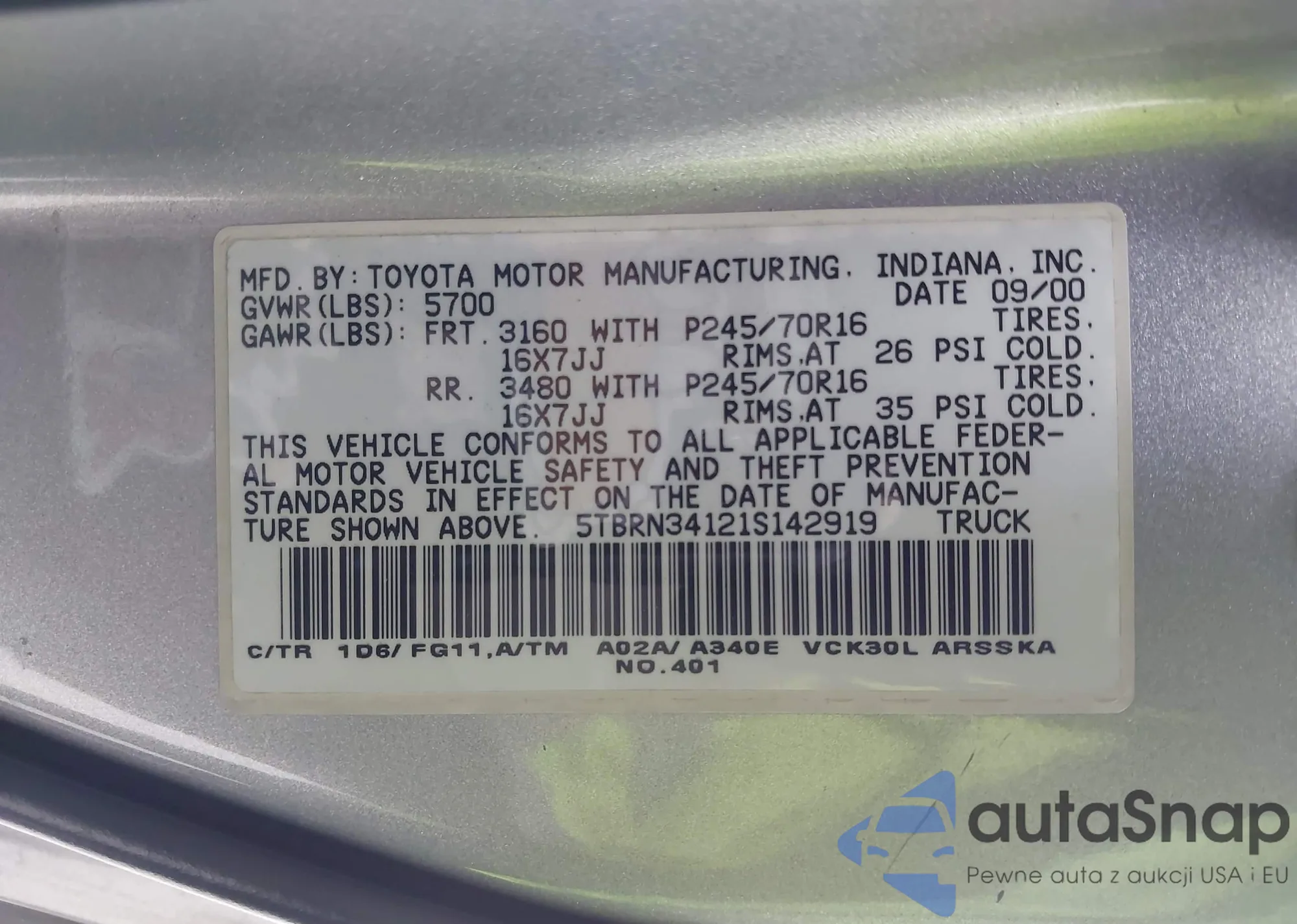 • VIN 5TBRN34121S142919