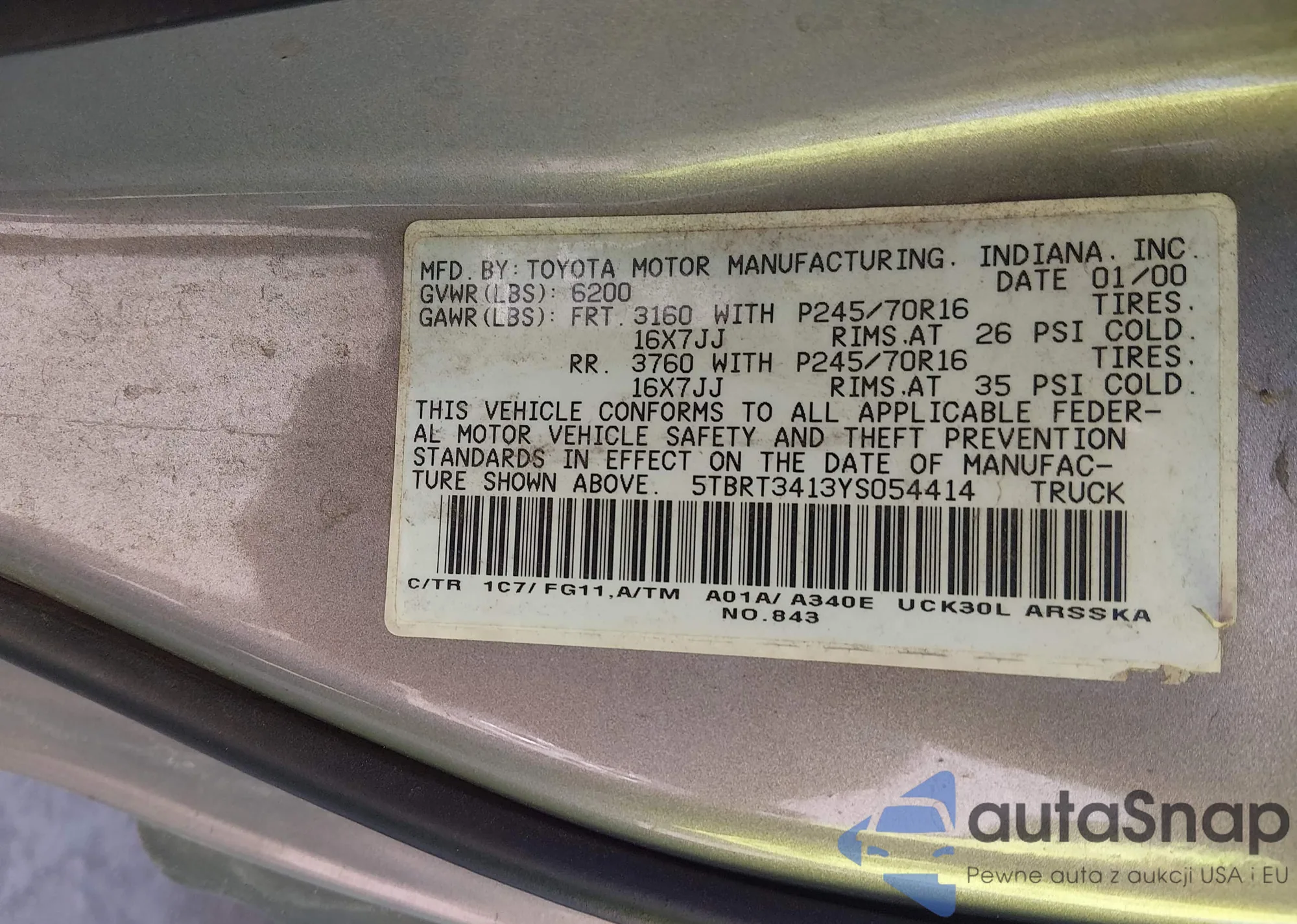 • VIN 5TBRT3413YS054414