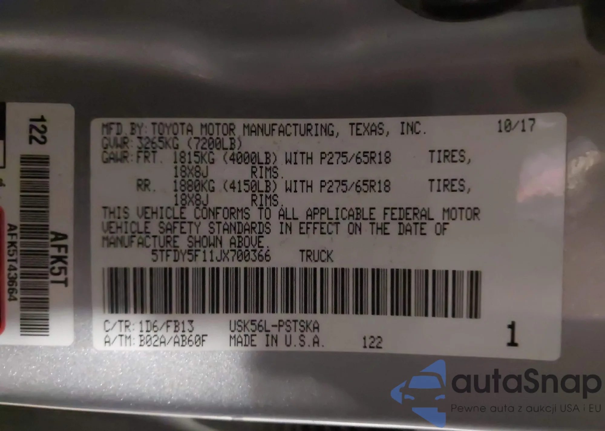 • VIN 5TFUY5F12AX118227
