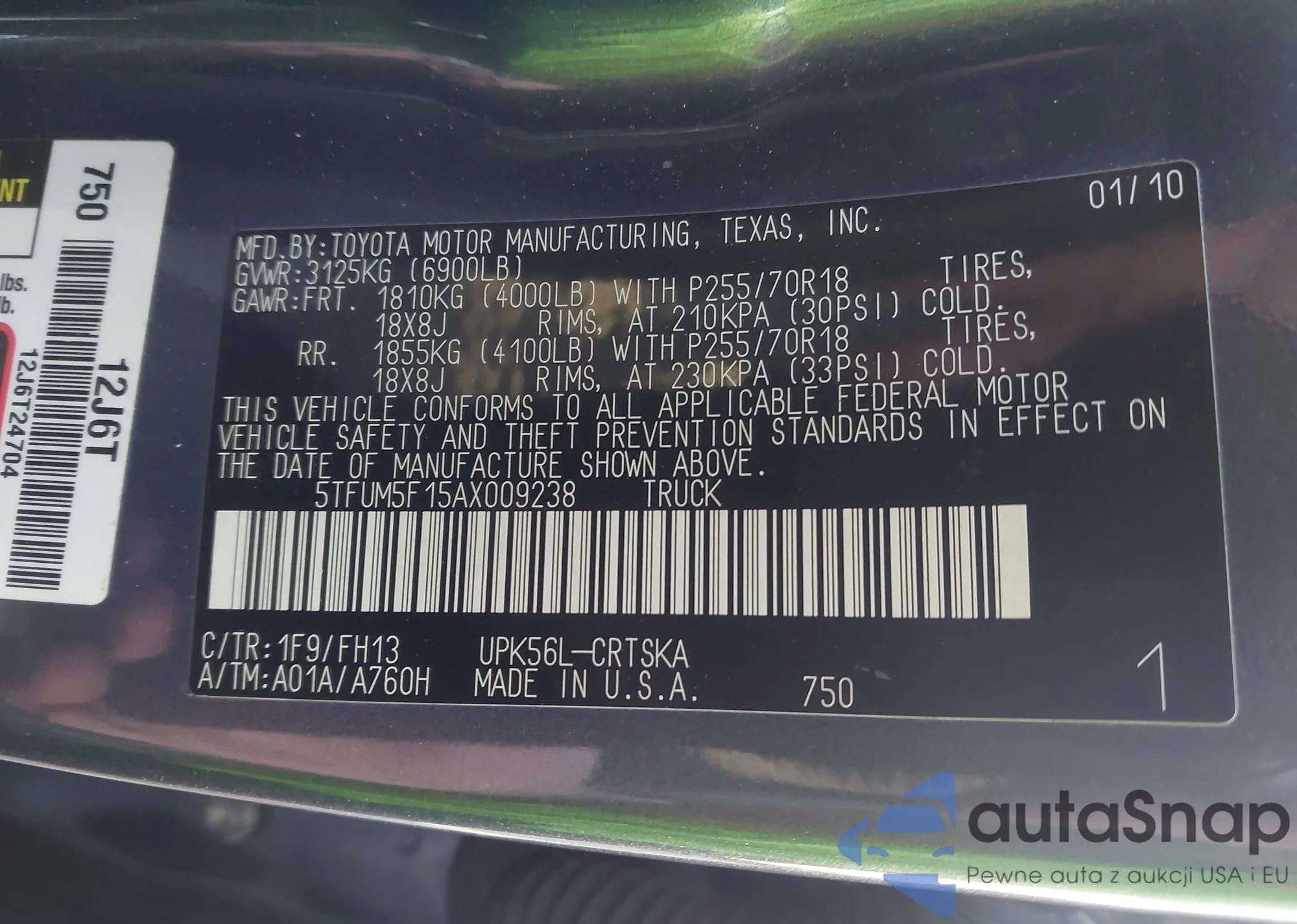 LOT: 44359944 VIN: 5TFUM5F15AX009238