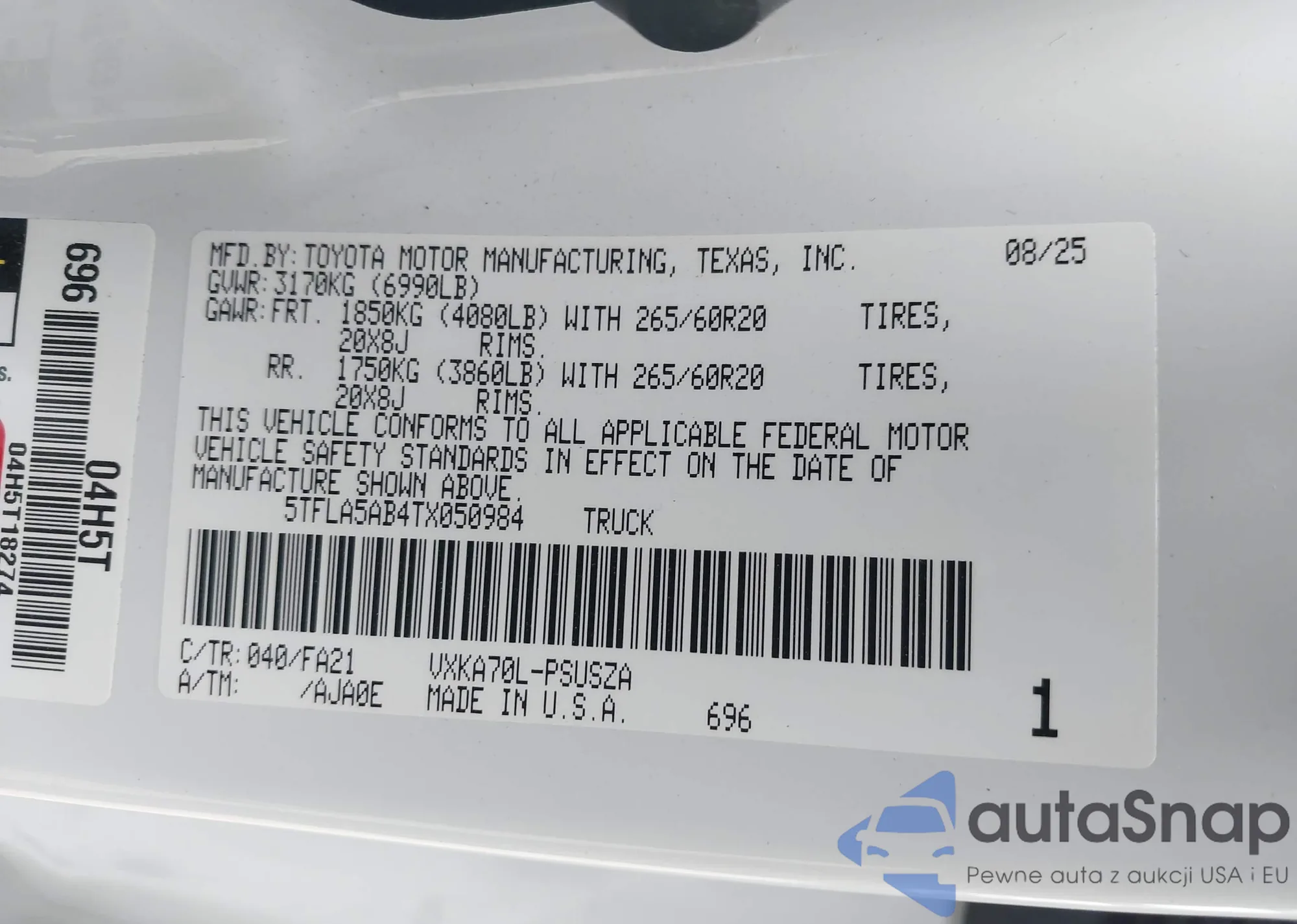Szukasz Toyota Tundra z USA? Autasnap to idealne rozwiązanie dla Ciebie! Importujemy ten wyjątkowy model prosto z Ameryki do Polski. Nasza usługa obejmuje konwersję, w tym wymianę świateł, szyb, kierunkowskazów oraz systemu nawigacji, aby Twój Tundra spełniał europejskie normy. Zaufaj nam i ciesz się nowym samochodem!