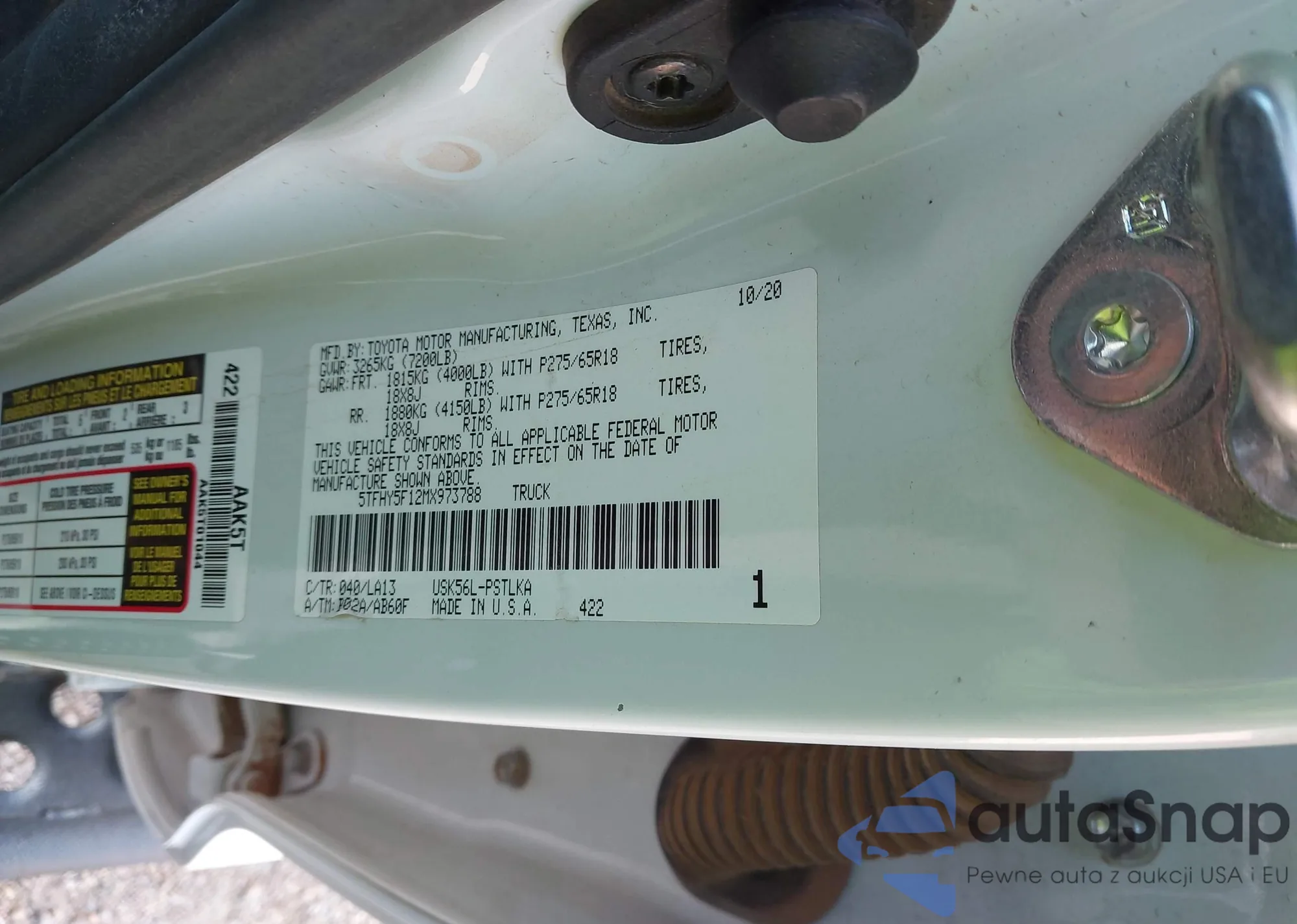 LOT: 43848463 VIN: 5TFHY5F12MX973788