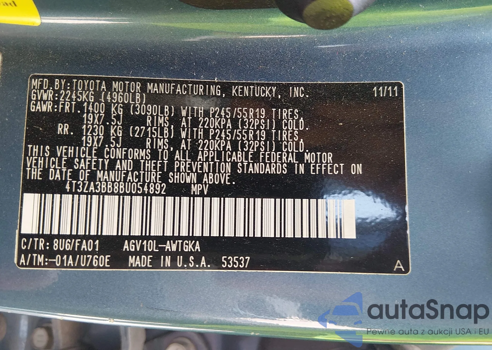 • VIN 4T3ZA3BB8BU054892