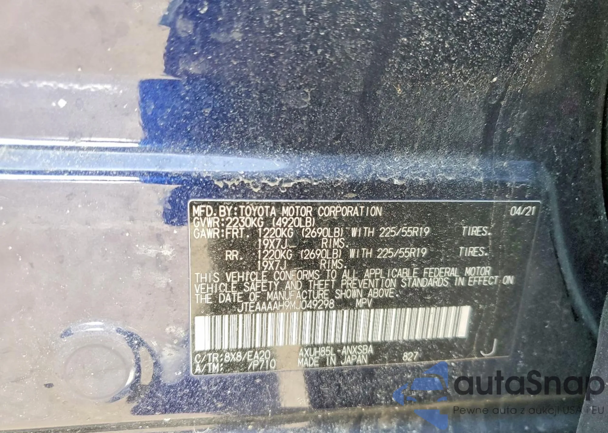 • VIN JTEAAAAH9MJ049298