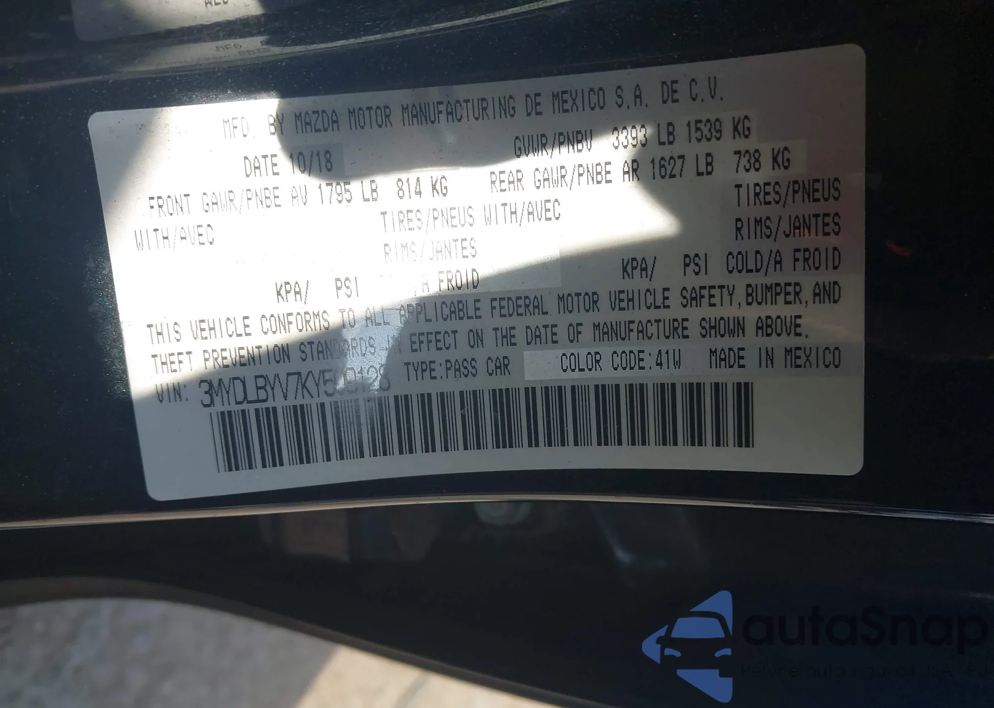 LOT: 43987847 VIN: 3MYDLBYV7KY509128