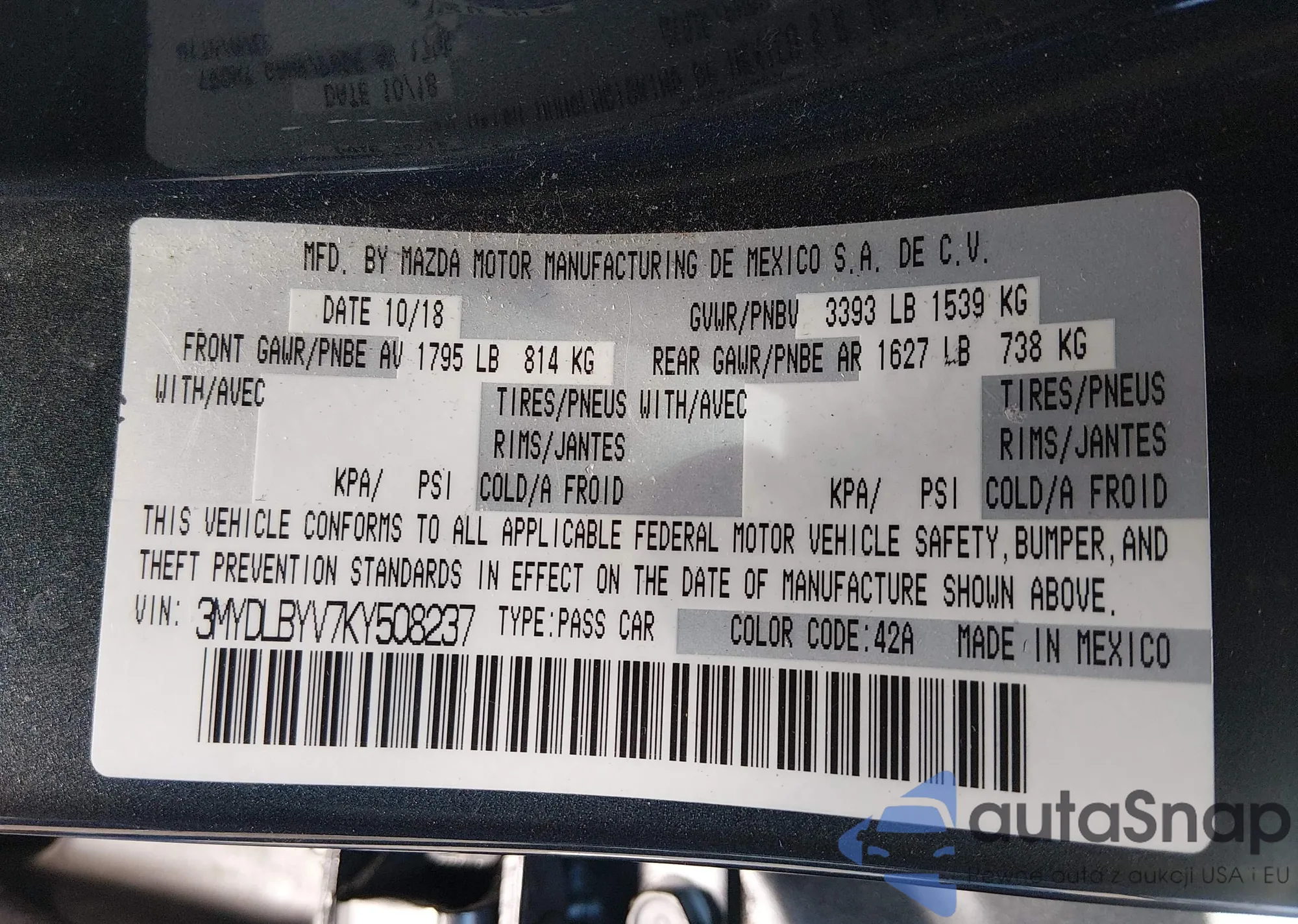 • VIN 3MYDLBYV7KY508237