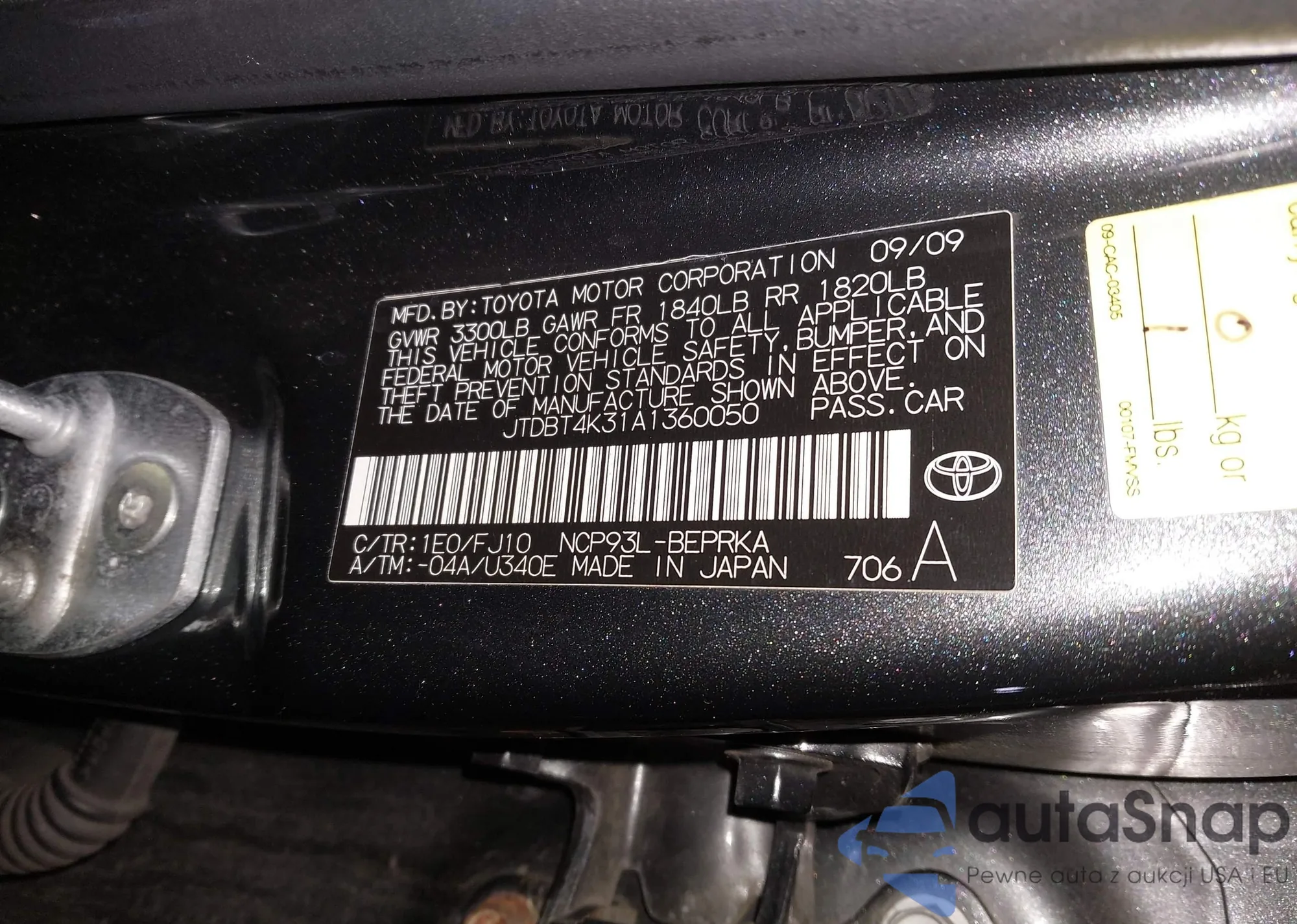 LOT: 44239419 VIN: JTDBT4K31A1360050