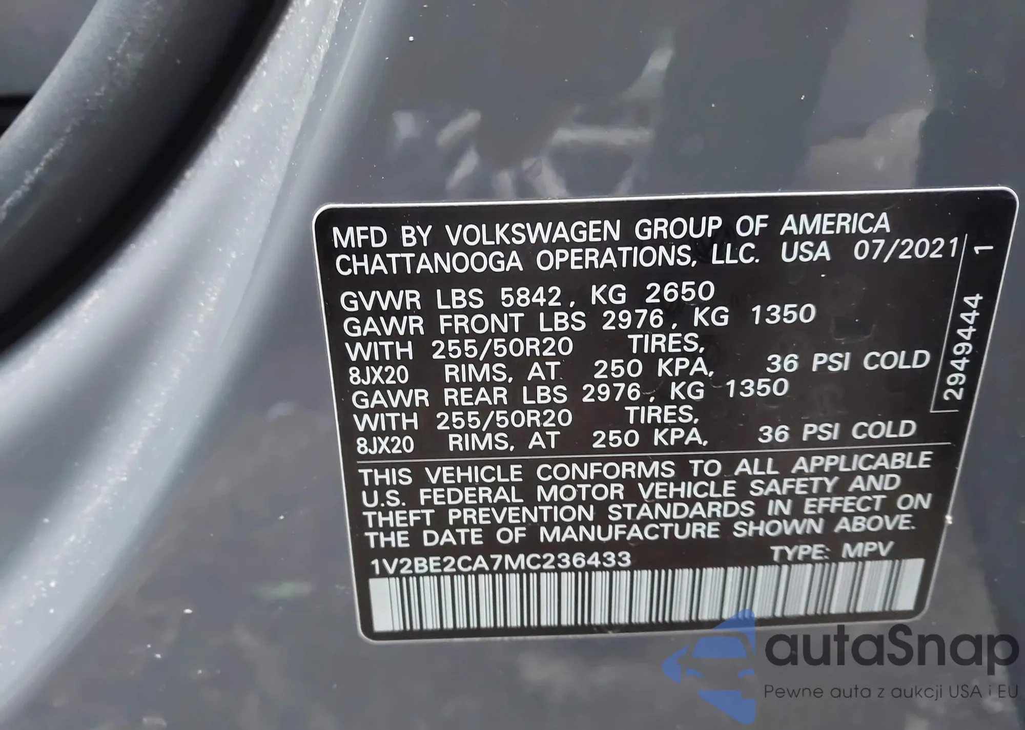 • VIN 1V2BE2CA7MC236433