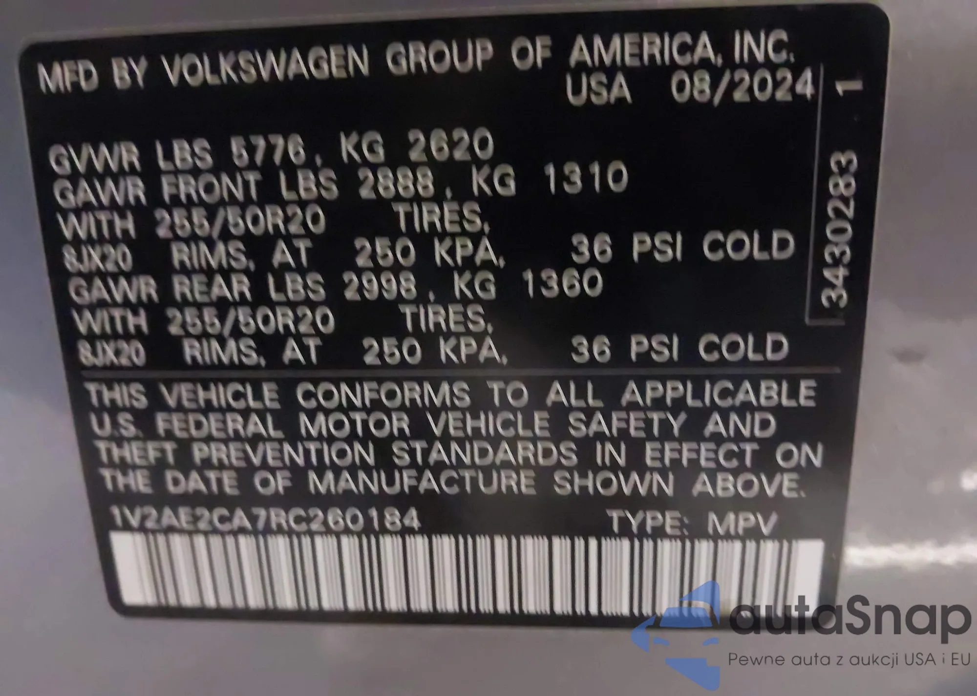 • VIN 1V2AE2CA5RC203465