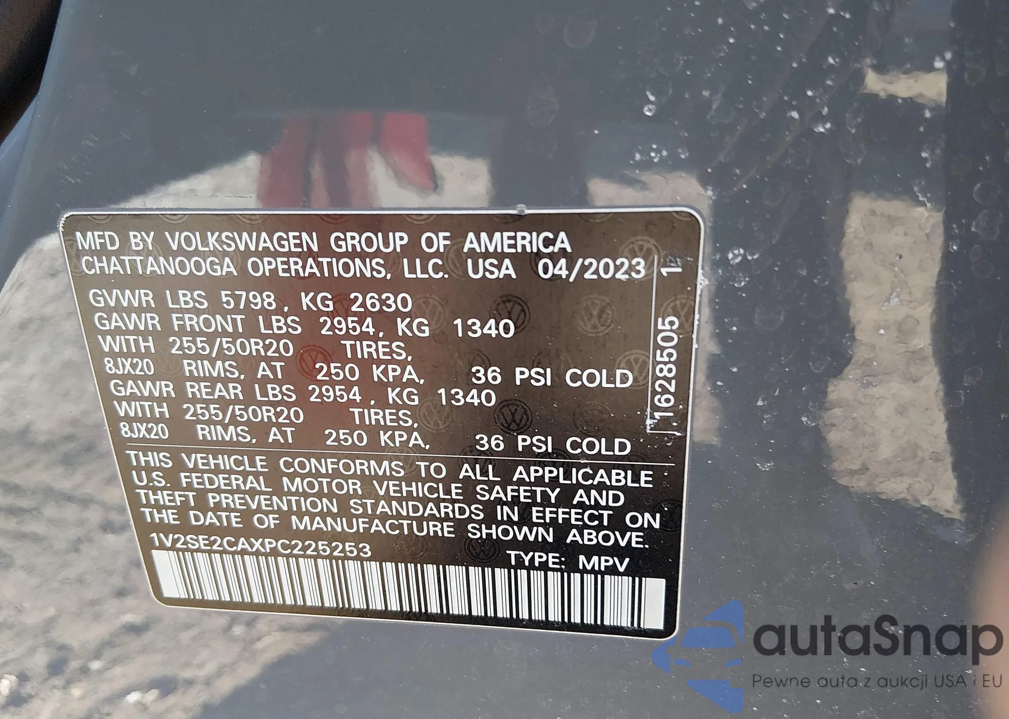 LOT: 44393578 VIN: 1V2SE2CAXPC225253