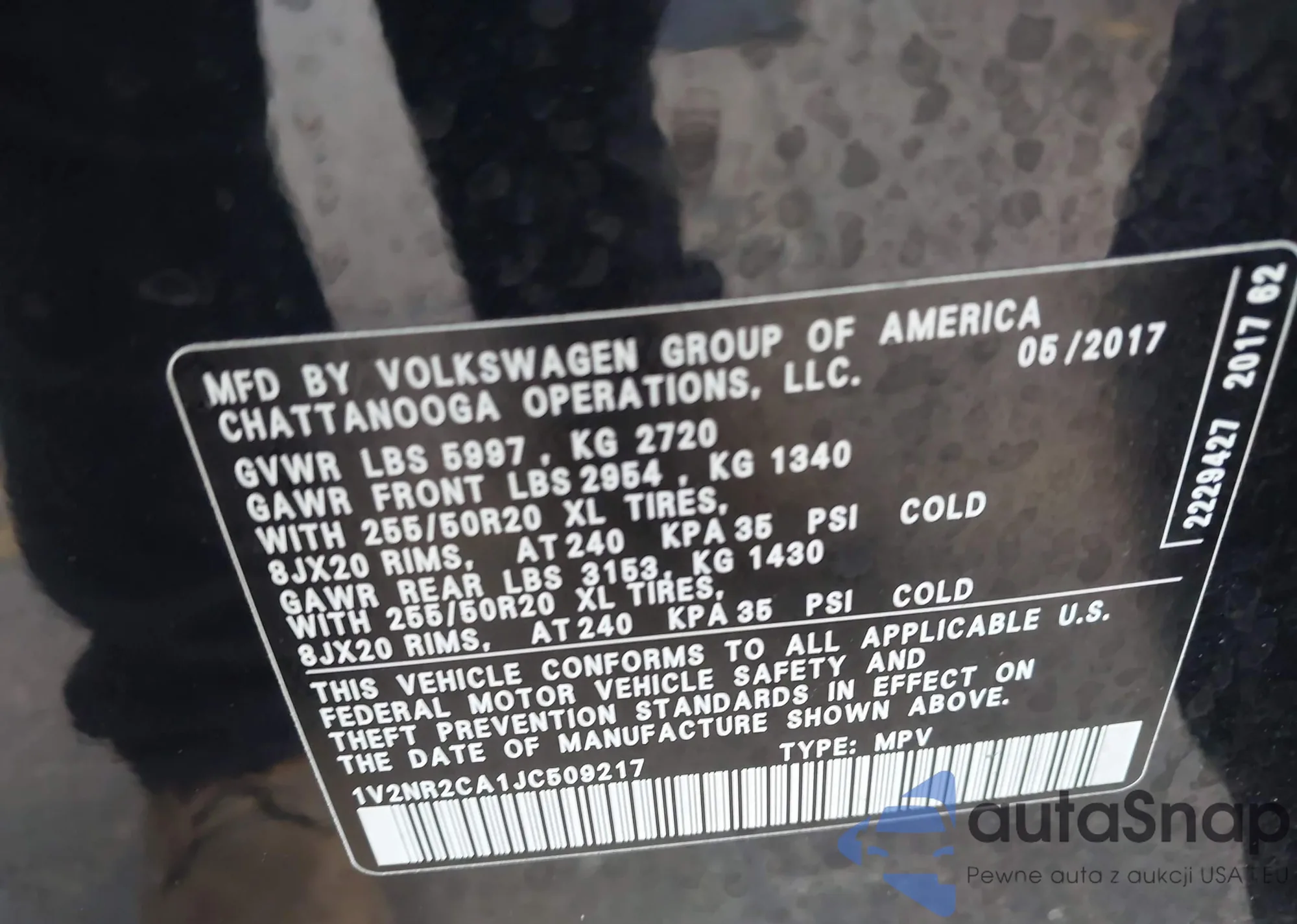 • VIN 1V2NR2CA1JC509217