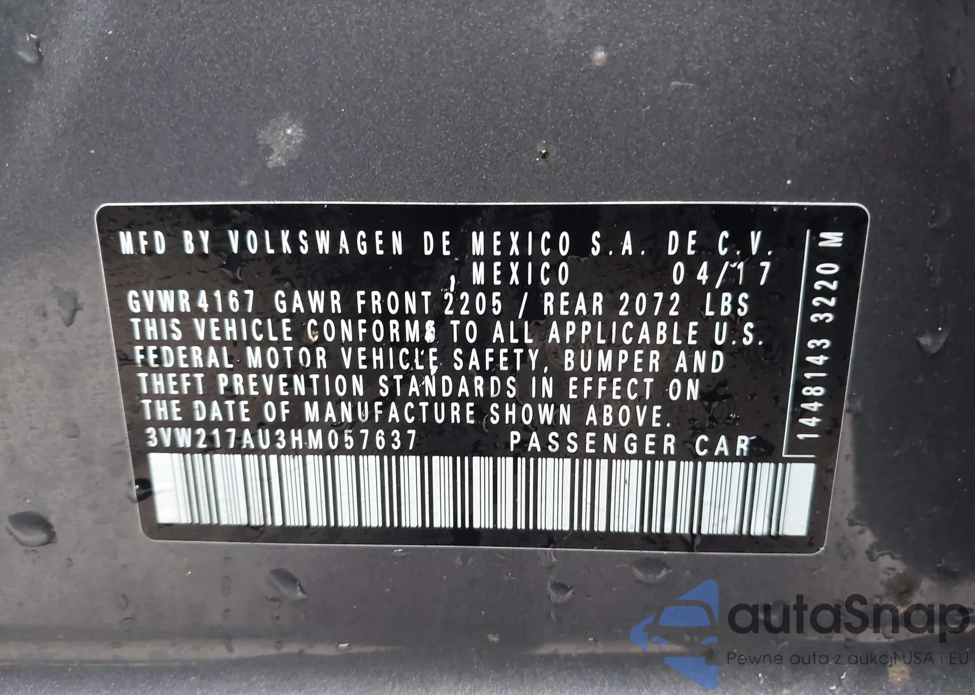 • VIN 3VW217AU3HM057637