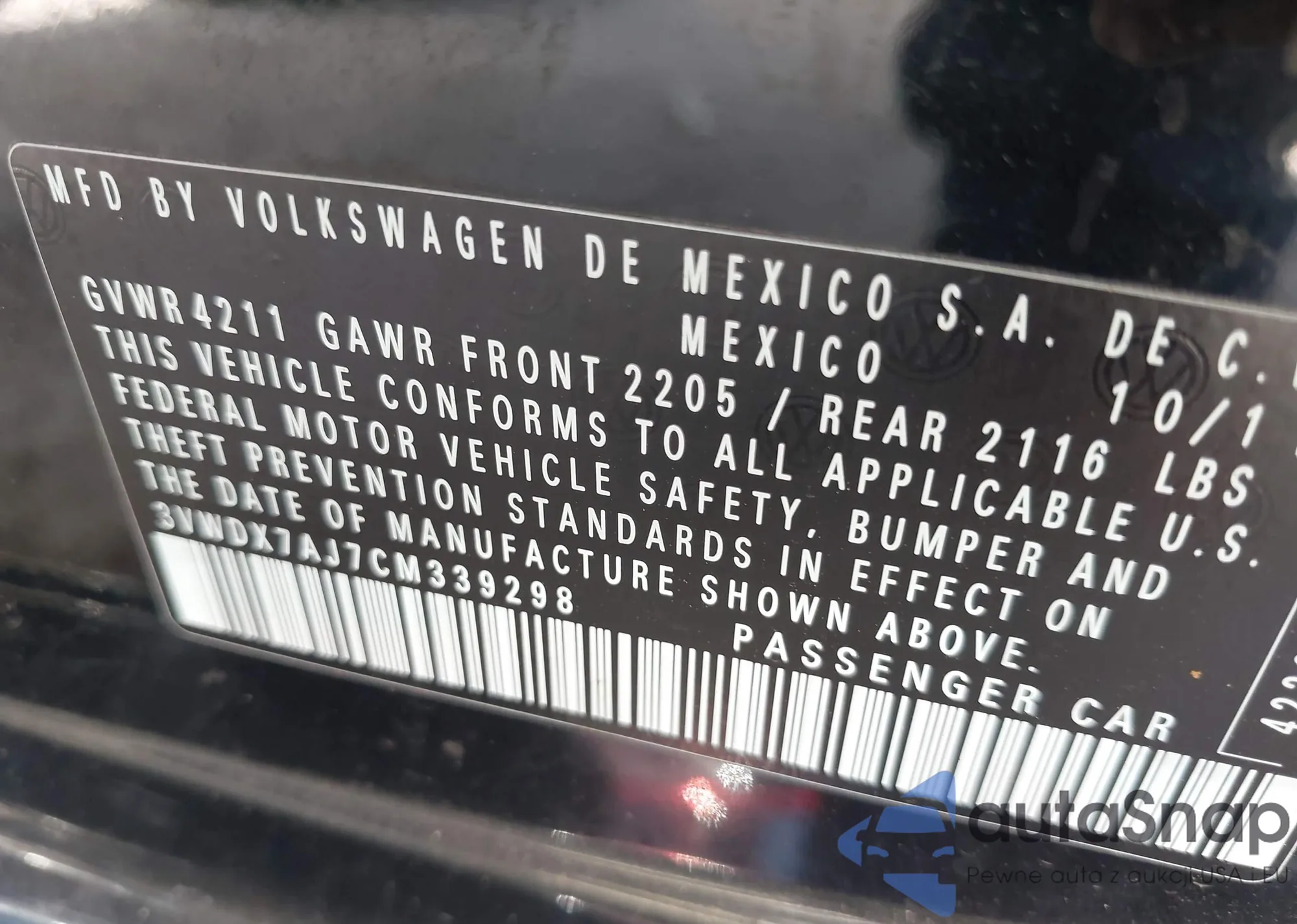 • VIN 3VWDX7AJ7CM339298