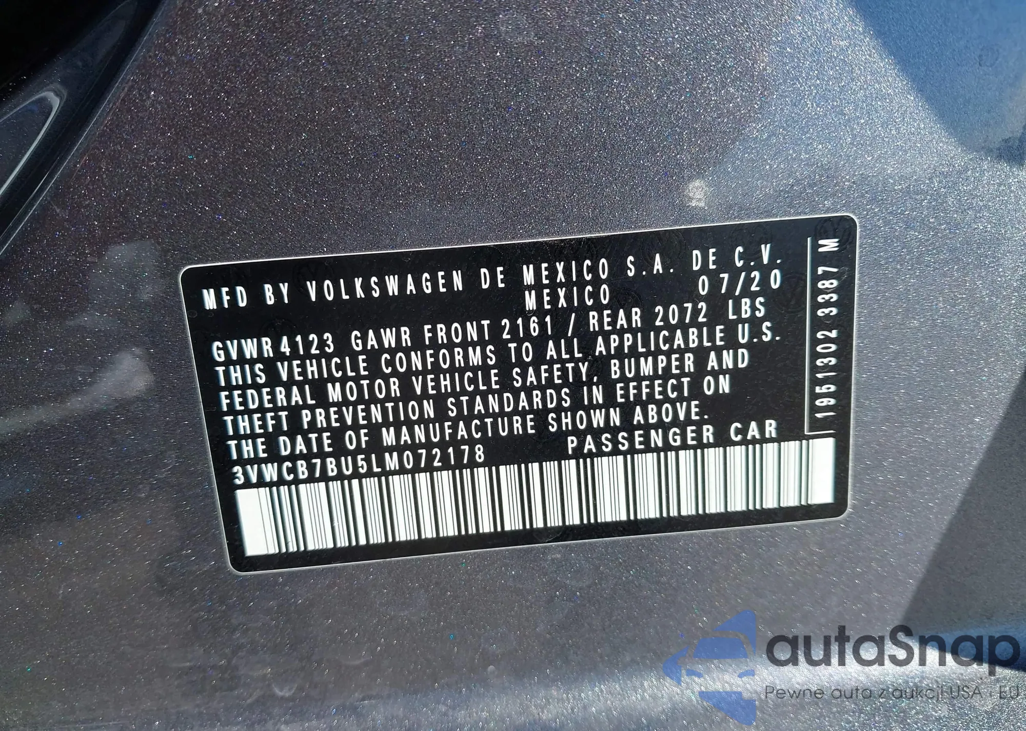 • VIN 3VWCB7BU5LM072178