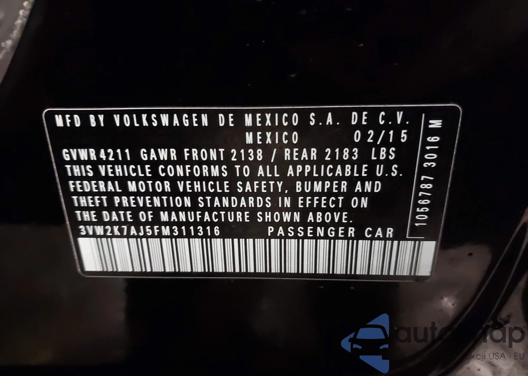 • VIN 3VW2K7AJ5FM311316