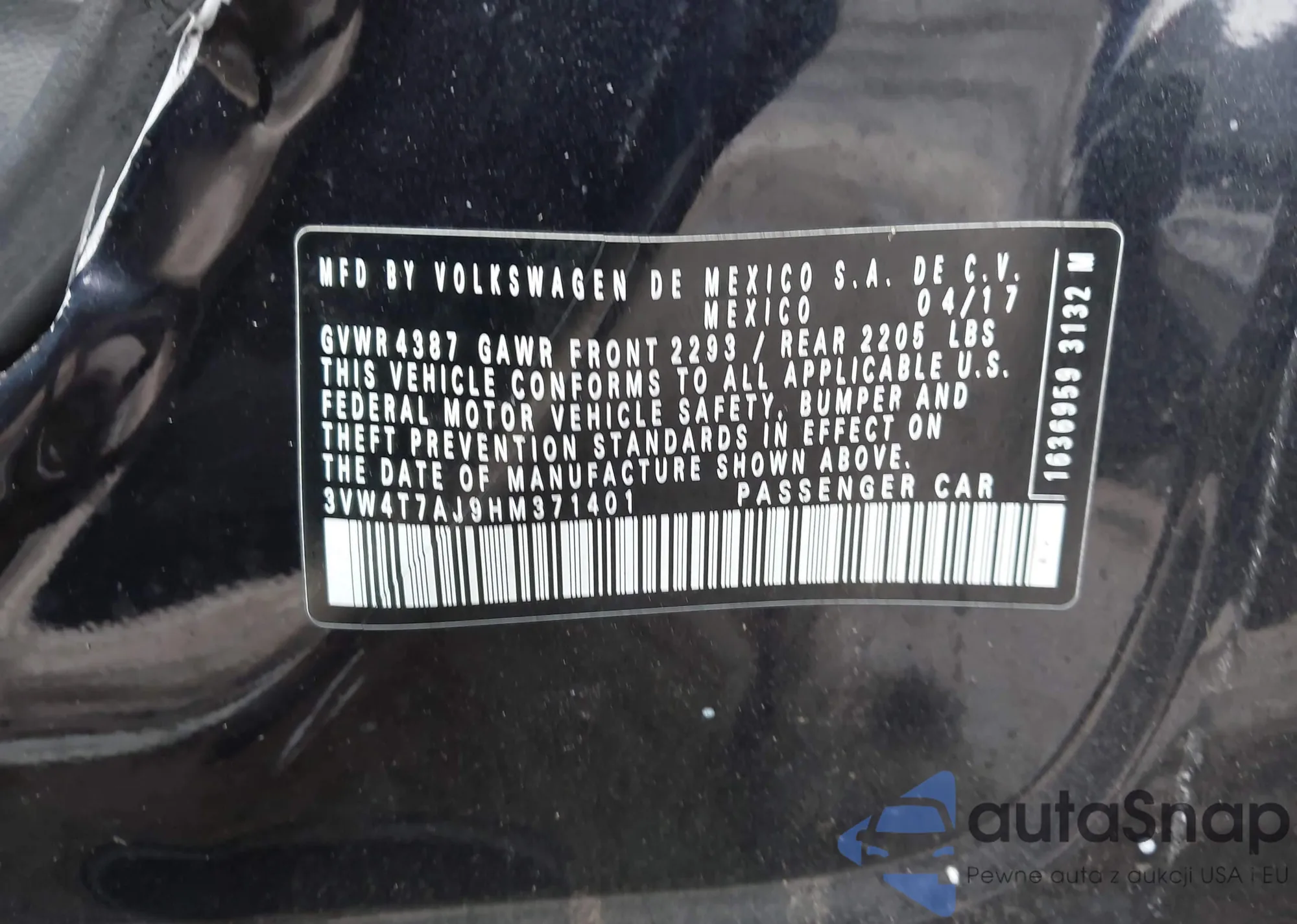 • VIN 3VW4T7AJ9HM371401