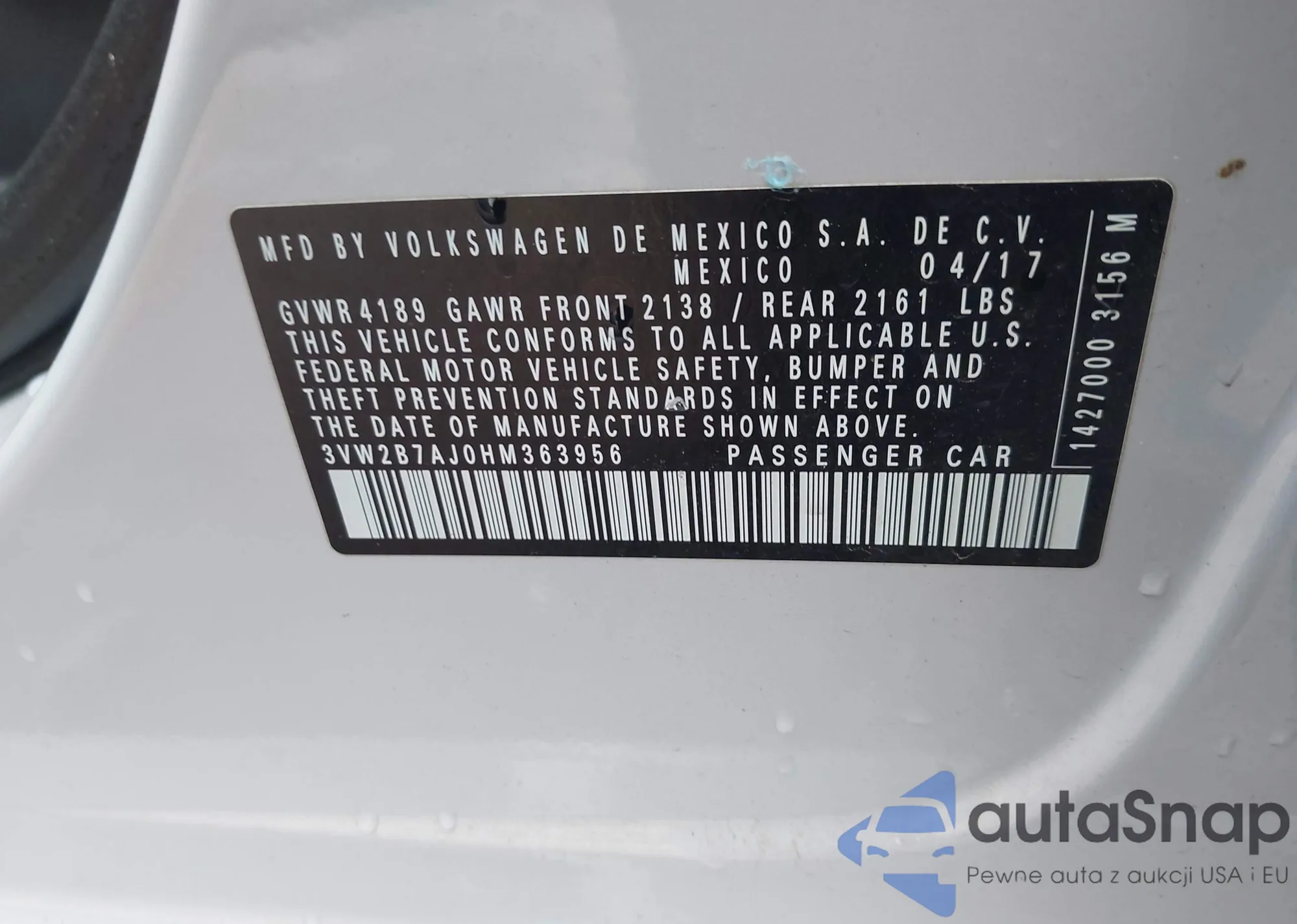 • VIN 3VW2B7AJ0HM363956