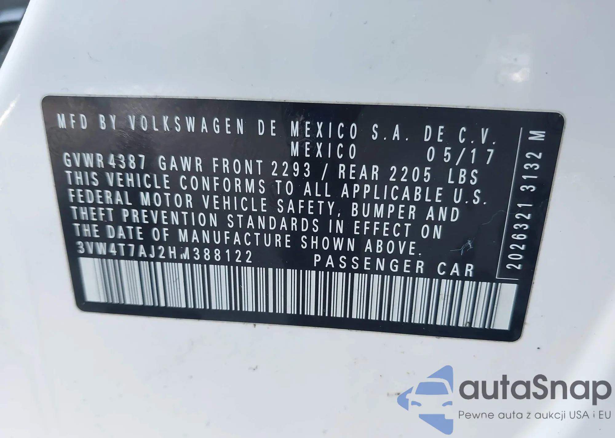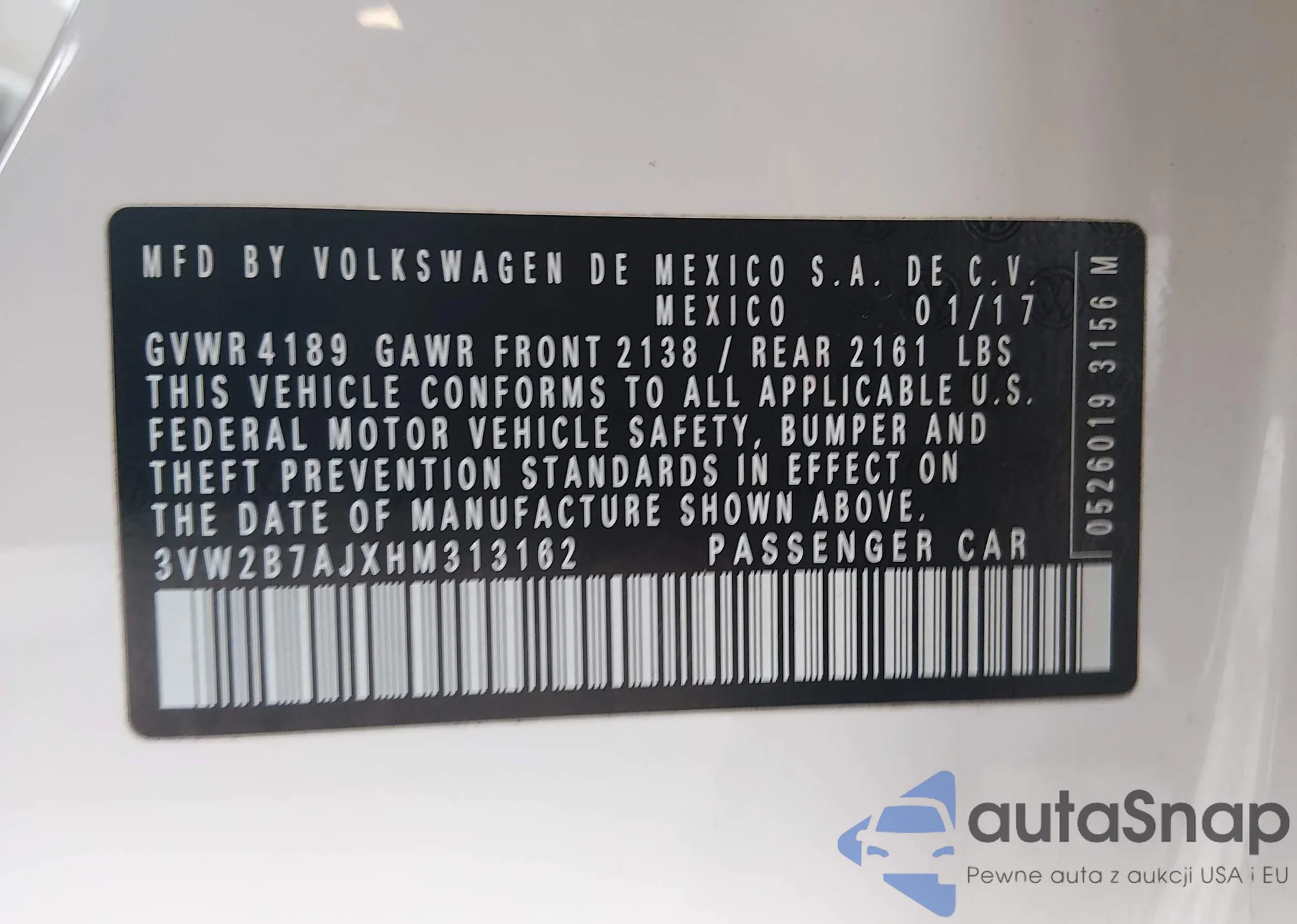 • VIN 3VW2B7AJXHM313162