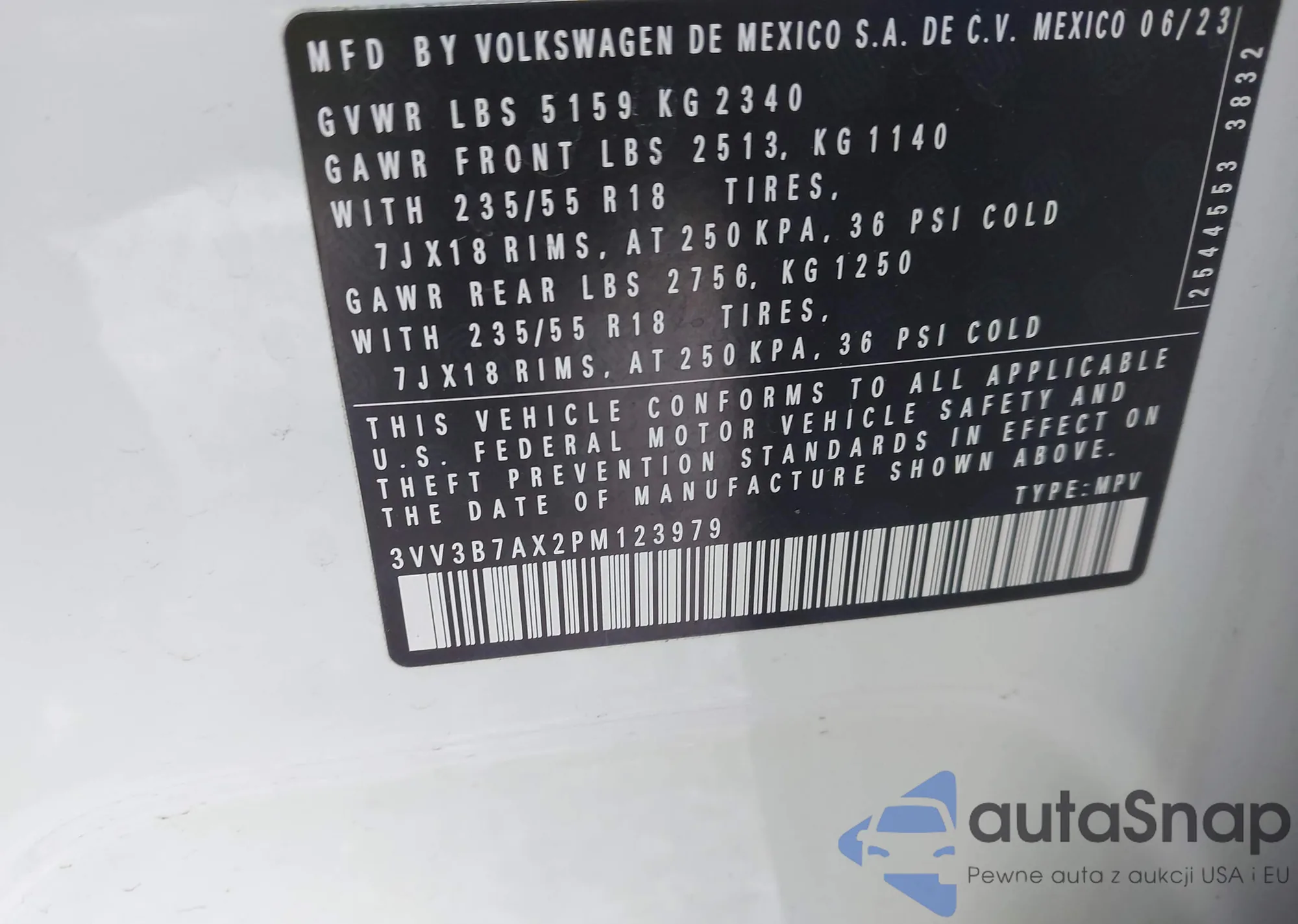 • VIN 3VV3B7AX2PM123979
