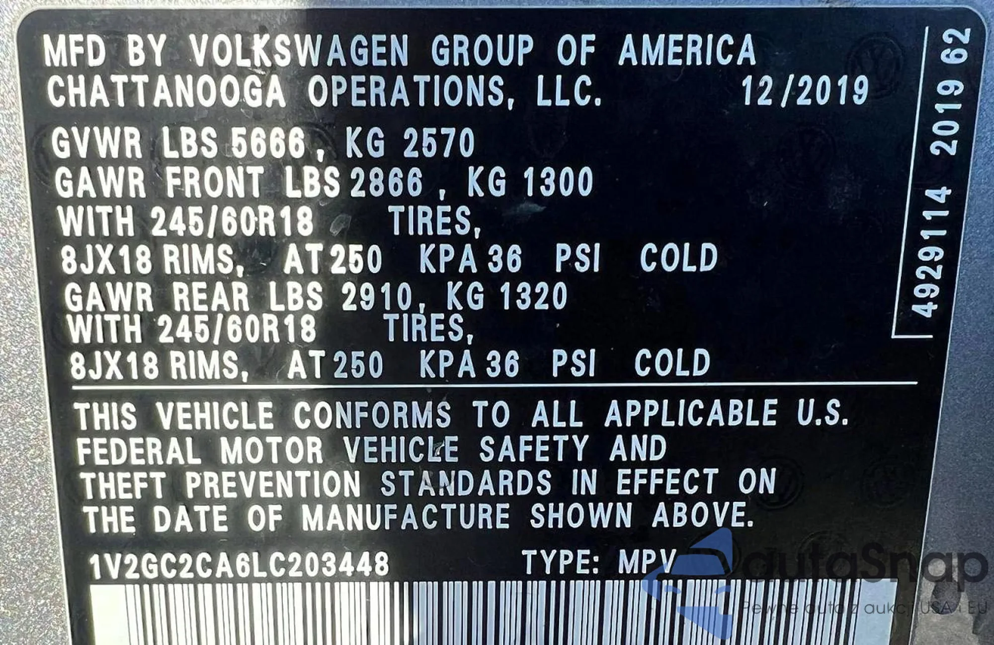 LOT: 79608565 VIN: 1V2GC2CA6LC203448