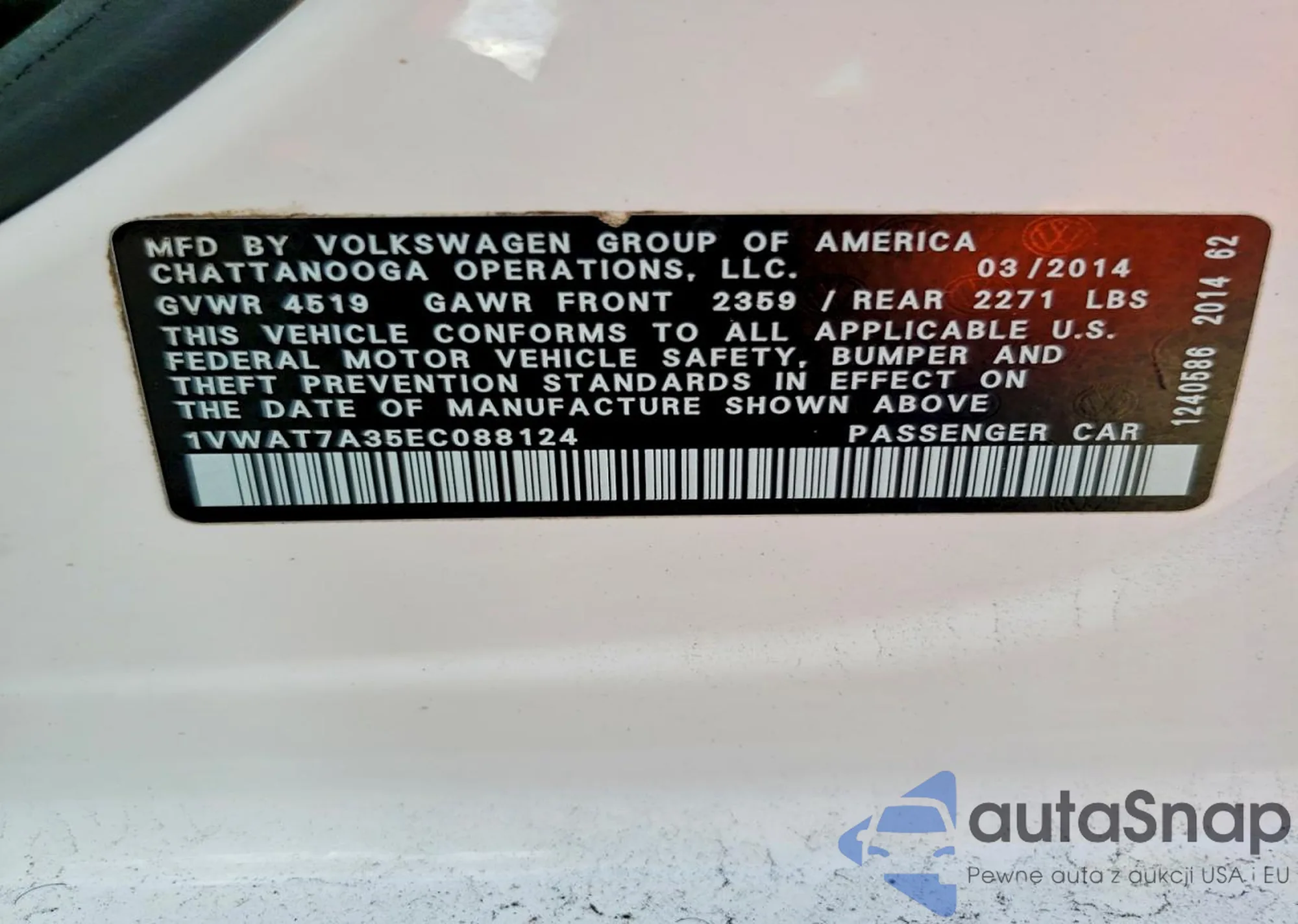 • VIN 1VWAT7A35EC088124