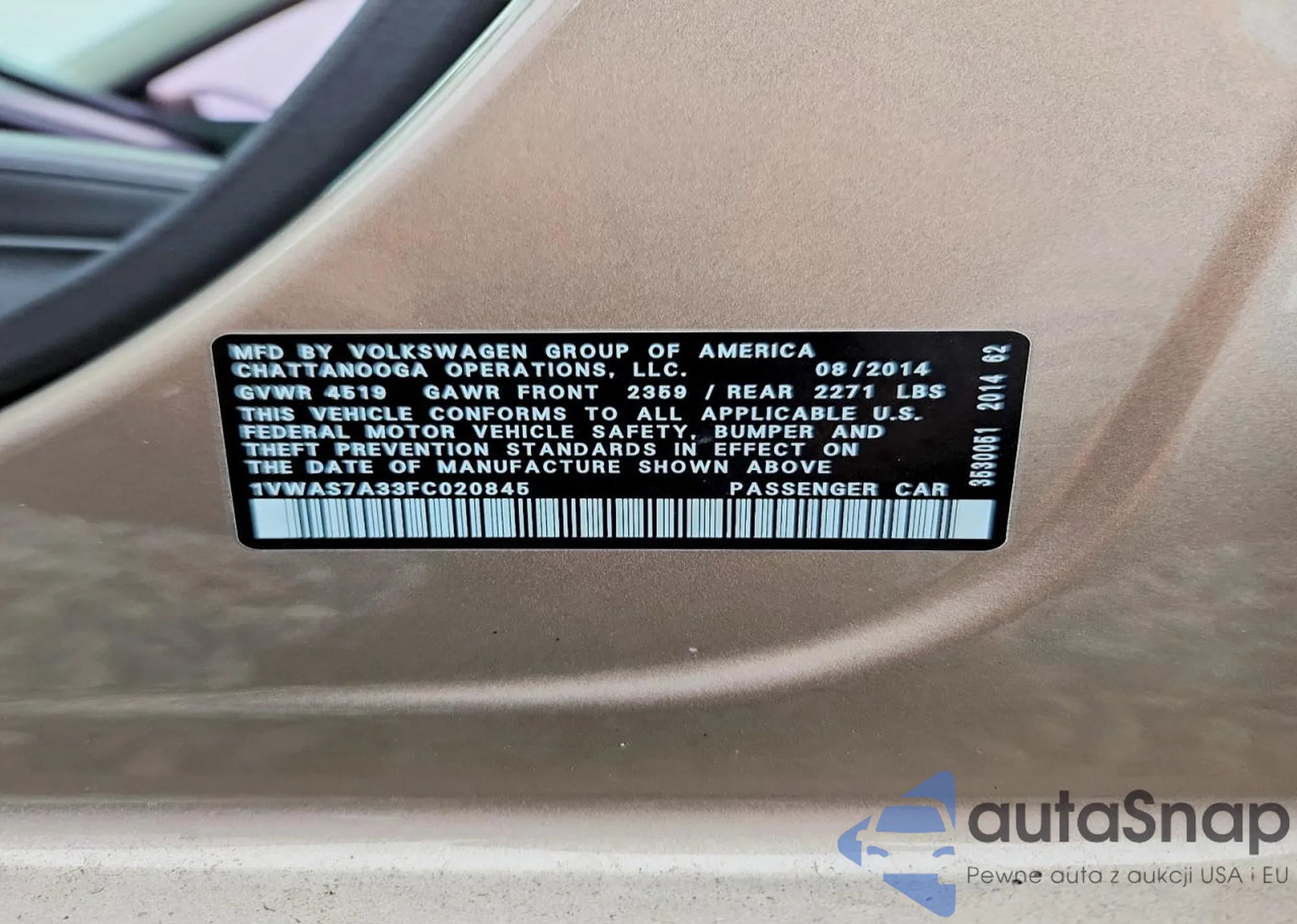 • VIN 1VWAT7A38FC120825