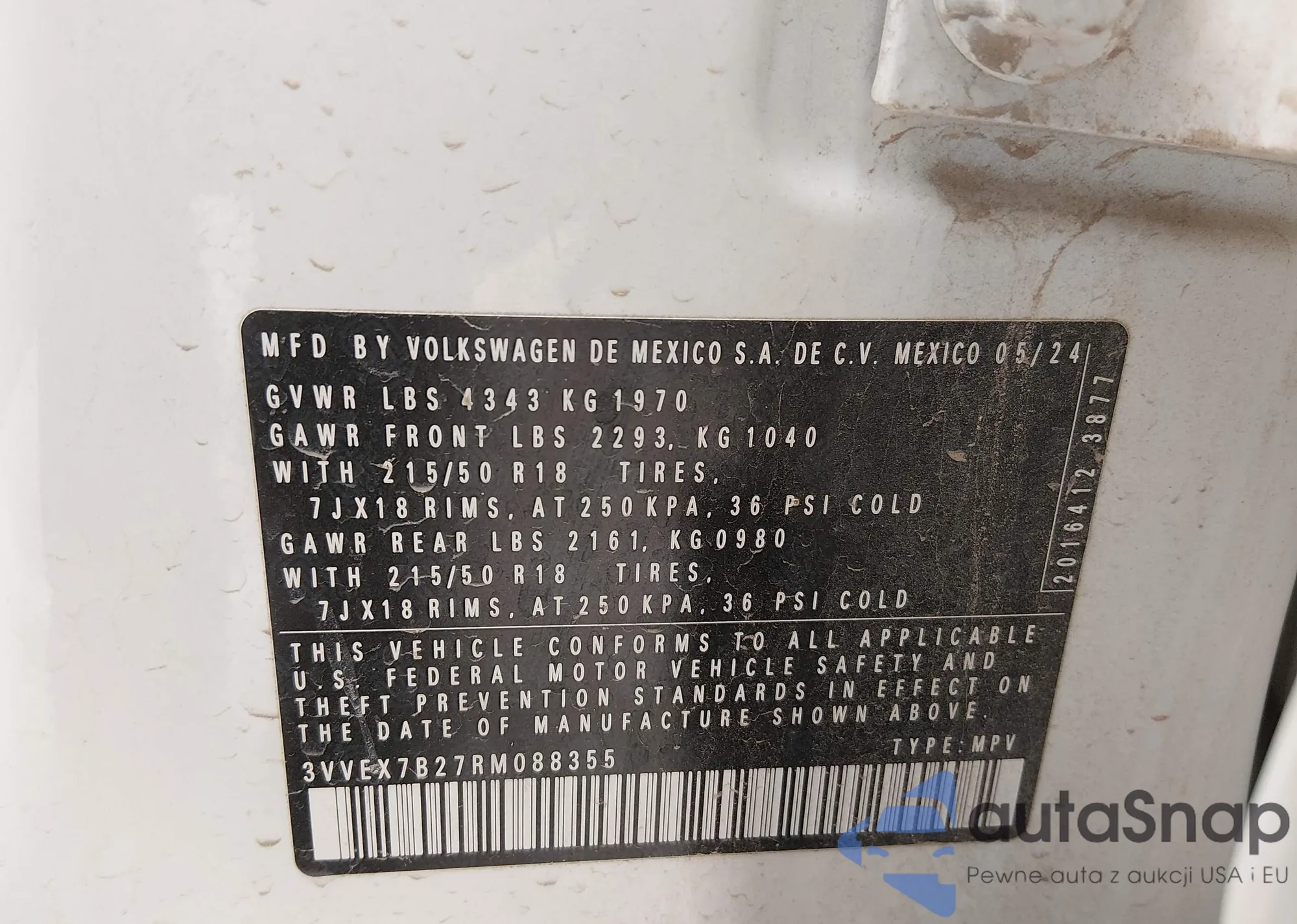 • VIN 3VV8X7B20RM071555