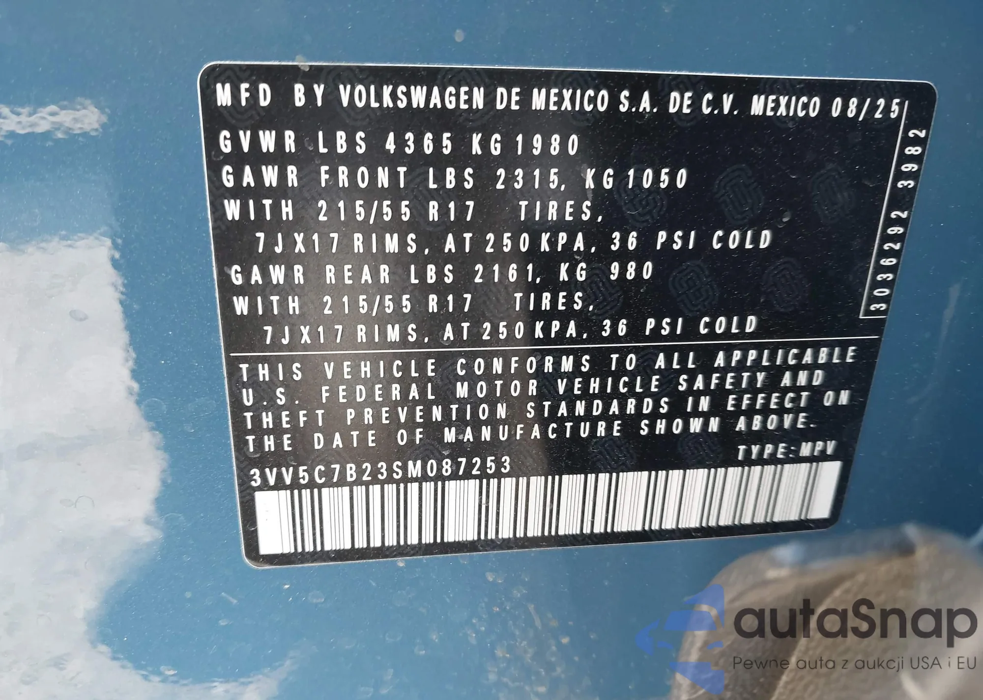 • VIN 3VV5C7B23SM087253